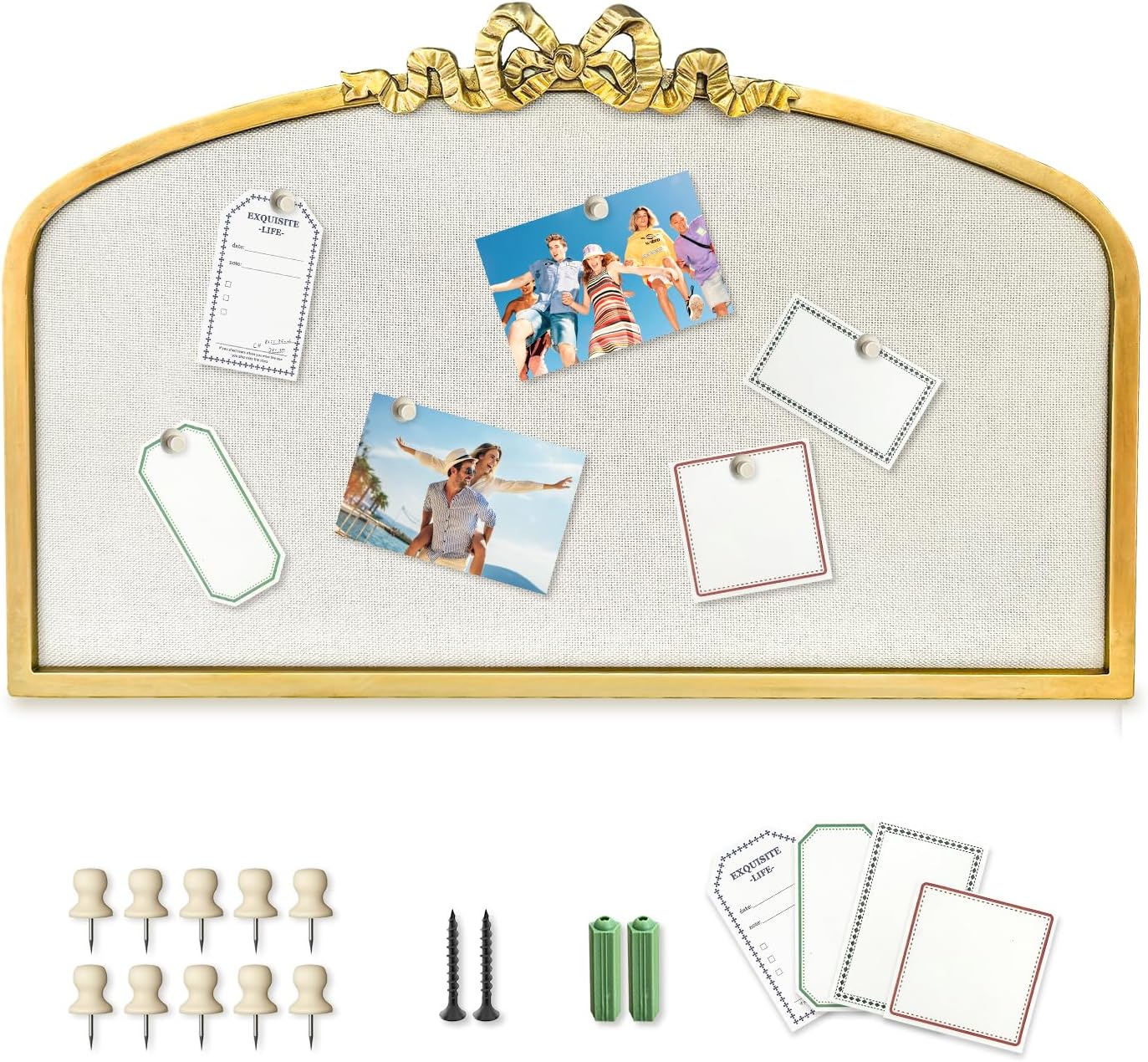 - 【French Vintage Elegance】Inspired by classic European aesthetics, this arch-shaped bulletin board showcases a gracefully designed gold bowknot, exuding timeless charm. Its refined silhouette makes this decorative cork board a striking statement piece for vintage, shabby chic, or Parisian-style interiors.