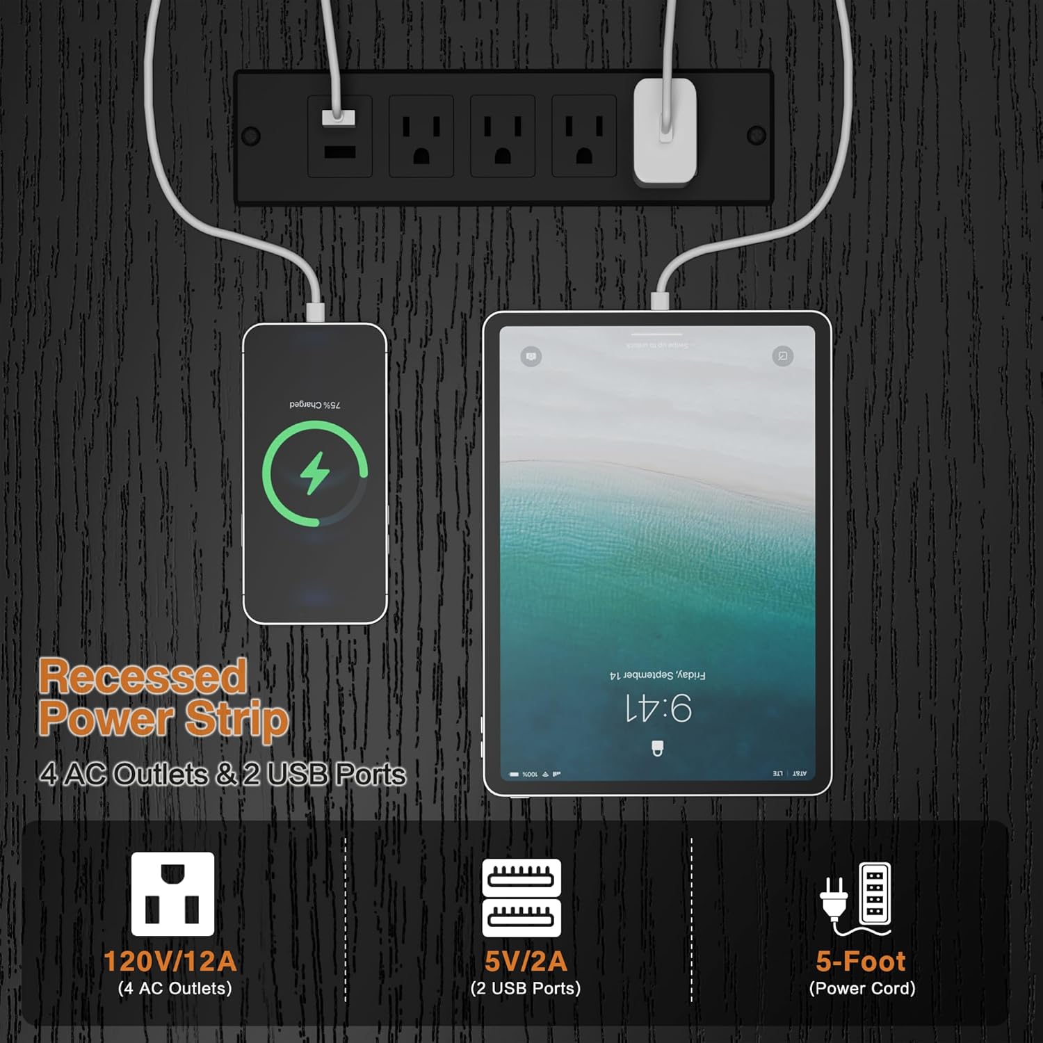 - 【USB Charging Interface and Power Socket】 Equipped with 4 power sockets and 2 USB charging interfaces, you can simultaneously power 5 electronic devices such as smart phones, gaming devices and Bluetooth devices when you work, study or play games. Make your life easier with this home desk.