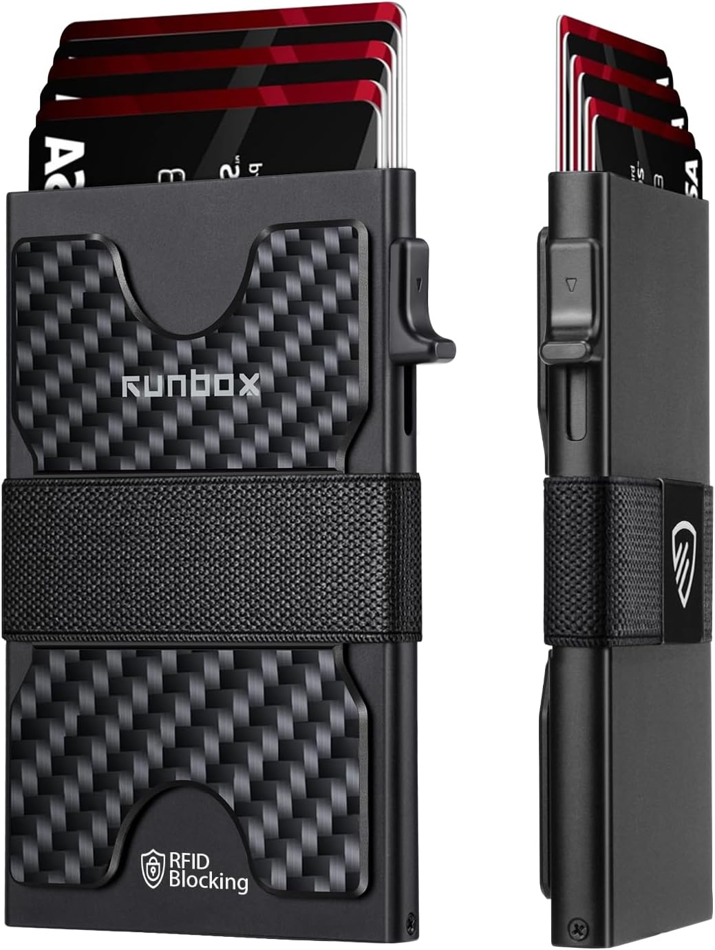 - Quick Access & Expandable Capacity (Holds 1-12 Cards): Experience effortless card access with our patented pop-up button mechanism β press to instantly eject cards. The main aluminum card holder compartment holds 4-6 cards(depending on embossed designs), while the expandable metal backplate adds 6-8 extra slots. *Total capacity varies with card thickness