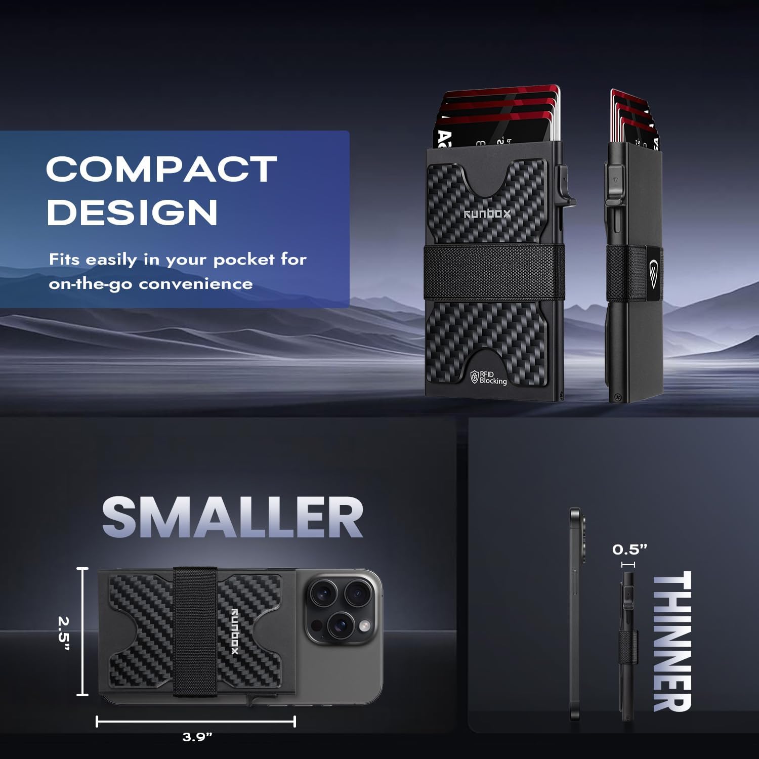 - SLIM WALLET FOR MEN with Ultra Thin & Lightweight Design: At just 0.5" thick and 2.6oz, this minimalist tactical wallet slips seamlessly into any pocket. Dimensions: 3.9"x2.5" β perfect for discrete everyday carry. The innovative expandable backplate adds storage without bulk, letting you ditch oversized wallets