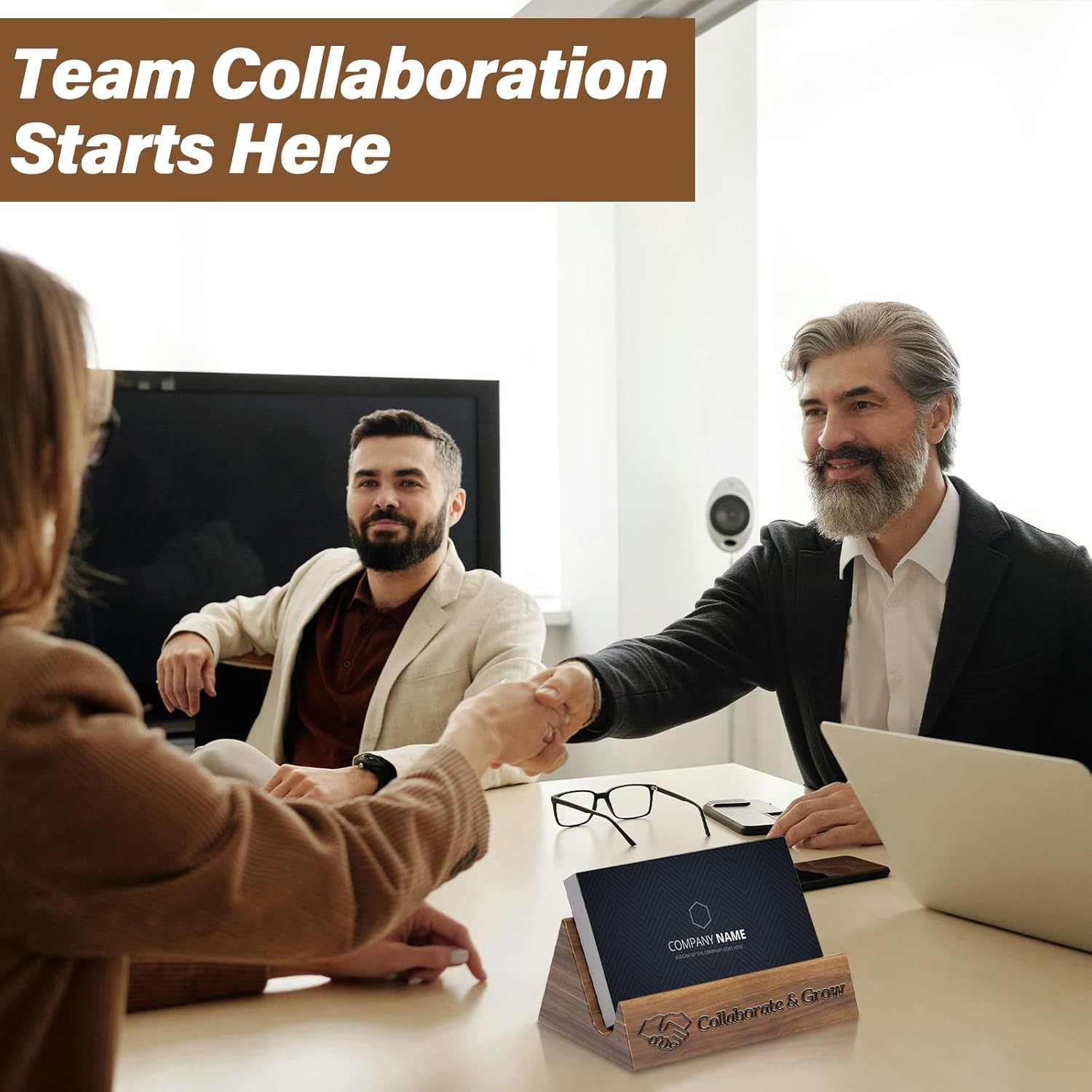 Custom Business Card Holder Desk-Personalized Engraved Wooden Business Card Case Holder, Customized Name Logo Business Card Display Gifts for Men Women (Walnut-Whole)