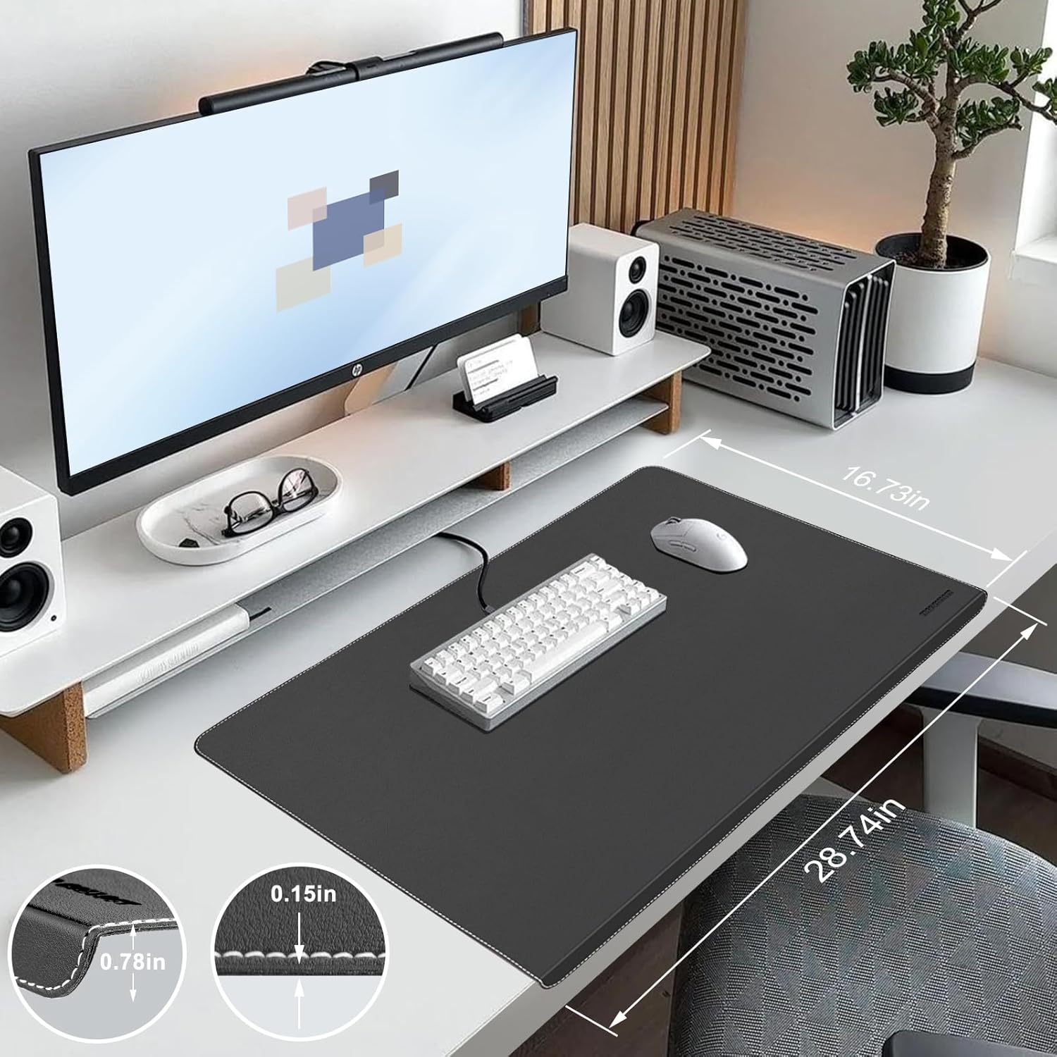 Desk Mat with Lip & Reinforced Stitched Edge|Non-Slip Waterproof PU Leather Desk Pad|Ergonomic Keyboard Mouse Pad with Edge Protector|for Office, Home, Study(28.74" x 16.73",Black)