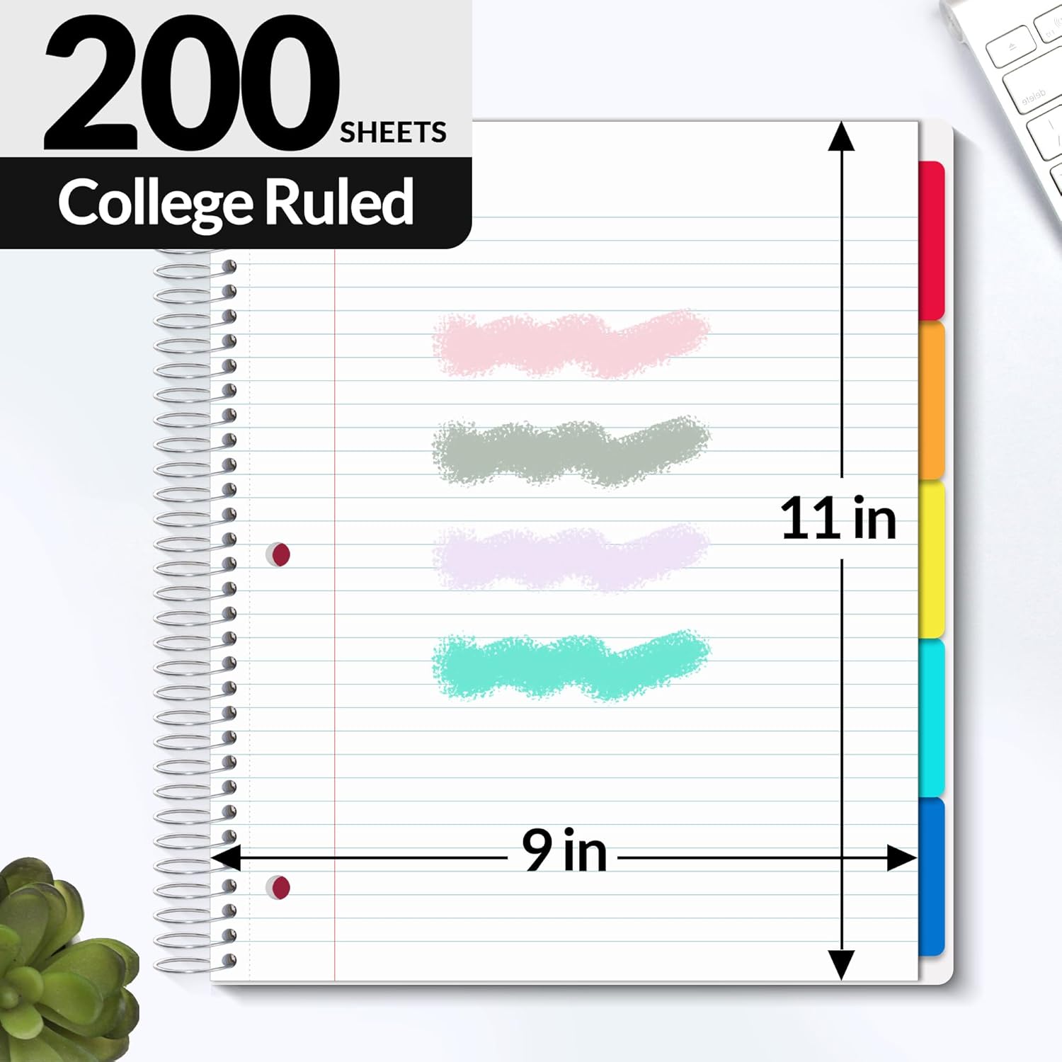 - CRAFTED IN DETAILS: Large overall note book size is 9.5" x 11". Inner paper size is 9" x 11". Thick PP front and back hardcover; Strong Spiral Binding keeps pages firmly together and won't bend or warp easily. Sturdy notebooks college ruled holds up well to frequent transfers in and out of backpacks, briefcases, and cars. Value for money college school supplies!