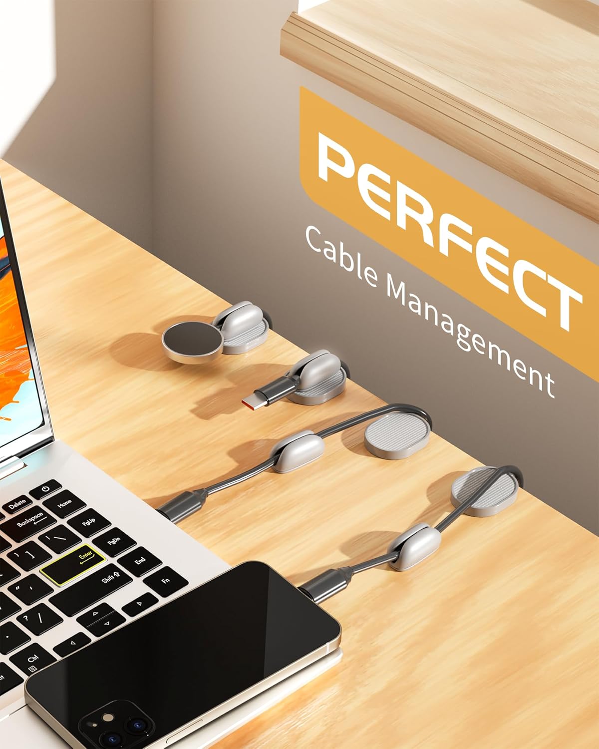 6 Pack Magnetic Cable Clips, Adjustable Cord Holder for Under Desk Cable Management, Adhesive Charger Wire Organizer Keeper for Home Office Desk Phone Car Wall Desktop Nightstand (Gray)