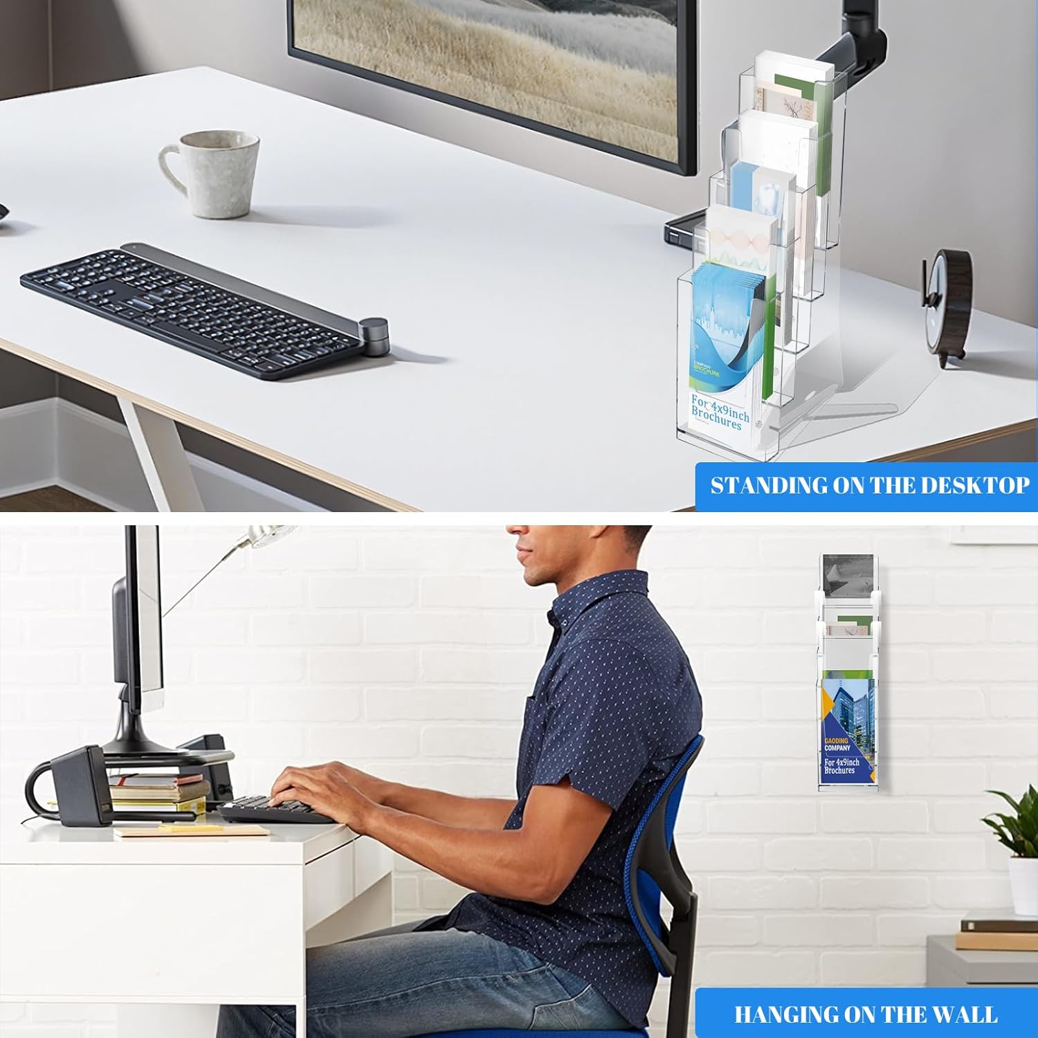 - 【Count𝐞𝐫𝐭𝐨𝐩/𝐓𝐚𝐛𝐥𝐞𝐭𝐨𝐩 𝐨𝐫 𝐖𝐚𝐥𝐥 𝐌𝐨𝐮𝐧𝐭】The brochure display stand features a slanted back design for stability on any desktop. The anti-slip slots keep your brochures neatly displayed and prevent the bottom from curling or warping. Two holes in the back for optional wall mount use.