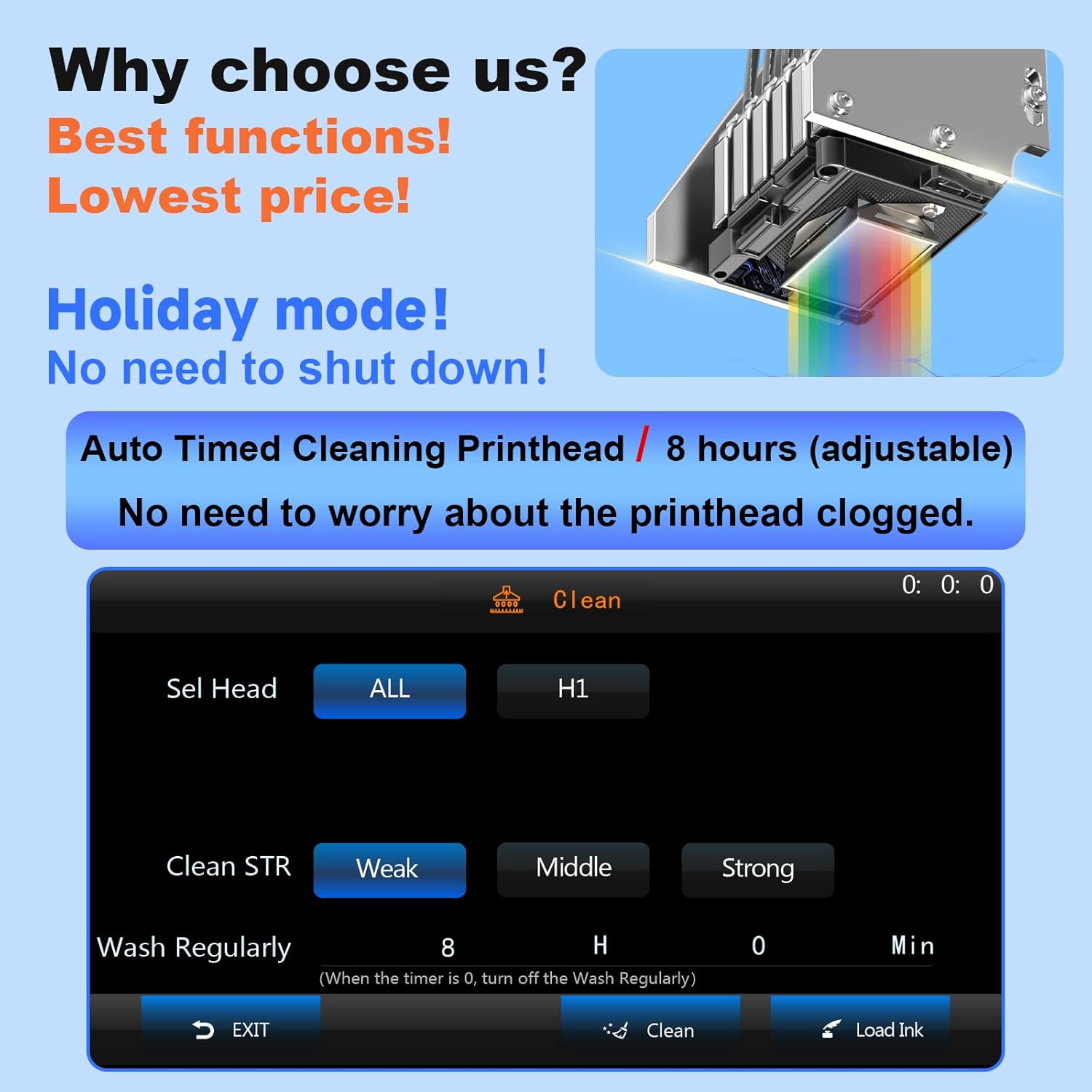 - ❤️ innovative anti-blocking technology, say goodbye to printing troubles: Equipped with 3-in-1 white ink cycle, mixing, filtration system and automatic cleaning and moisturizing device, to ensure that the nozzle is permanent and smooth, to avoid blockage and affect the work.