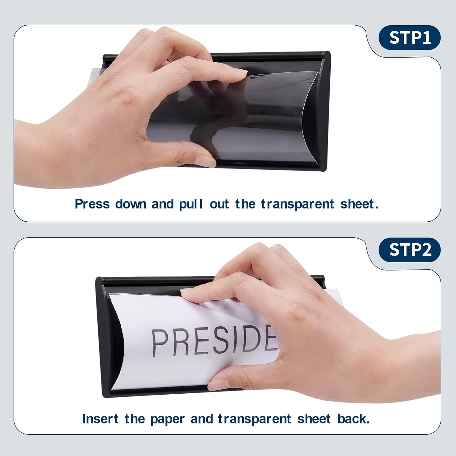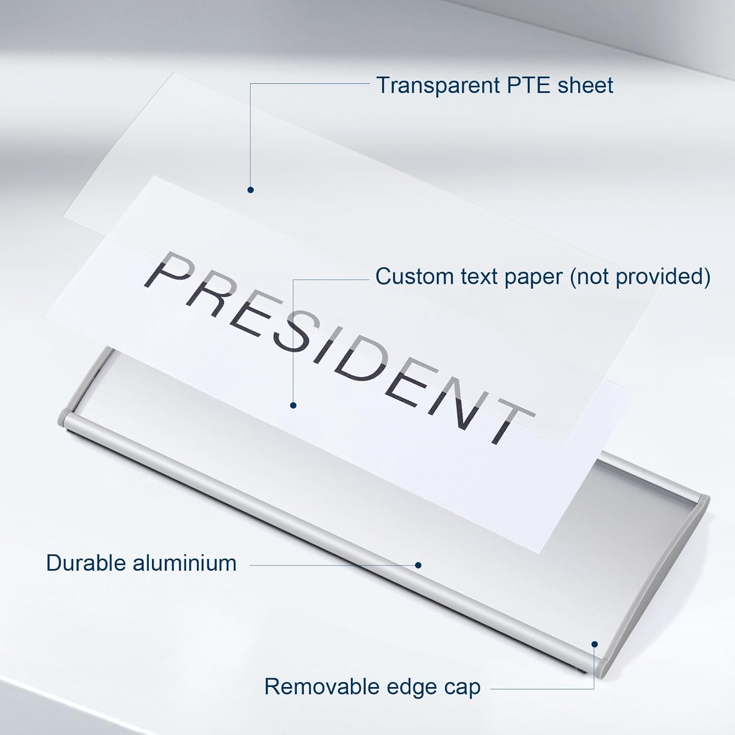 - Ample Quantity for Your Needs:The package includes 6 name plates for doors, providing ample quantity for offices. Each office door sign measures approximately 3 x 8 inches (8 x 21 cm), large enough to be easily noticed. The name plates are designed with a sleek, curved shape and come with a protective plastic film, ensuring durability. Installation is simple with the included adhesive tape, allowing you to mount the office sign for door quickly and securely. Please note, paper inserts are not included.