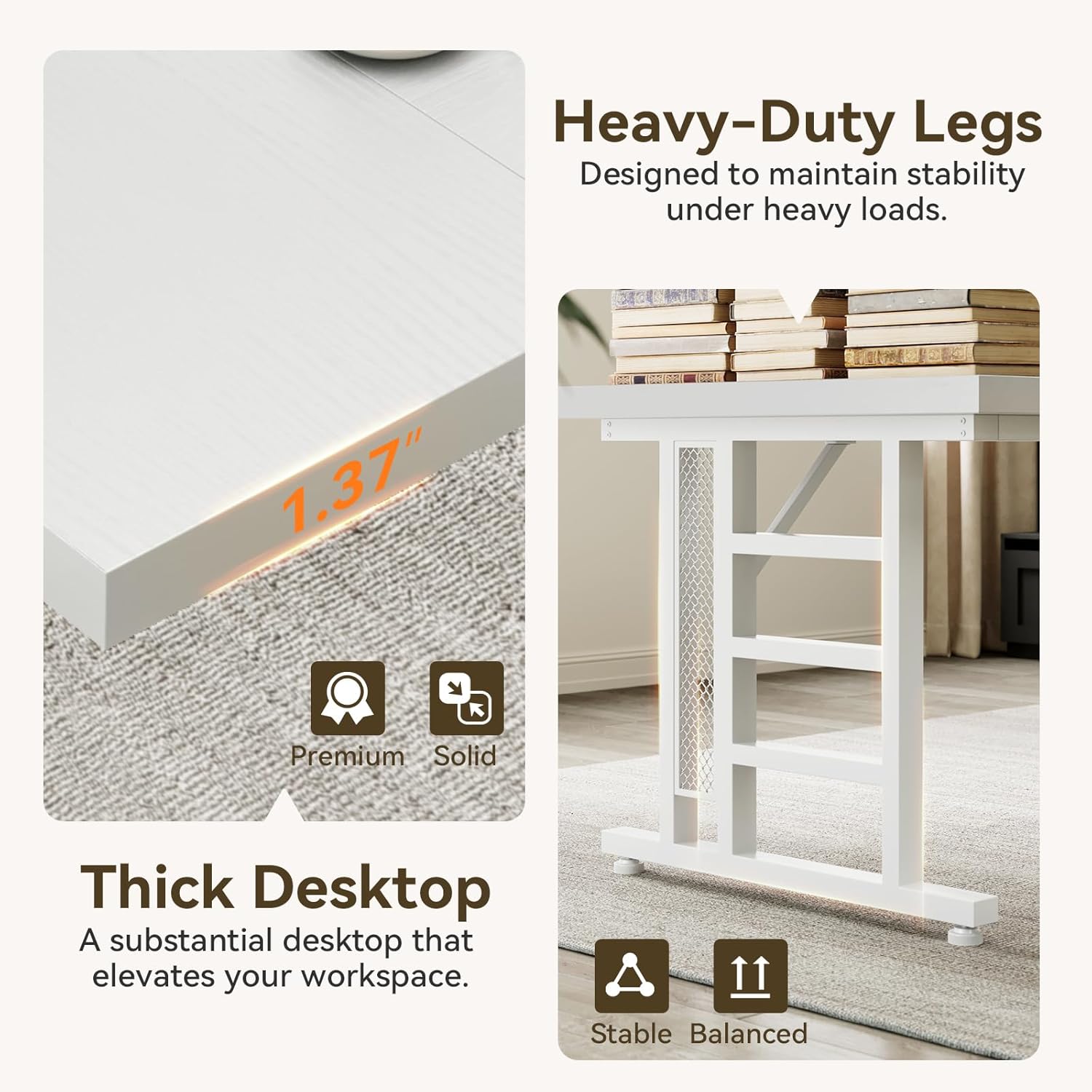 - ăHeavy-Duty, Sturdy Desk Frame for DurabilityăBuilt with a 1.37-inch thick engineered wood surface, this desk offers exceptional strength. The reinforced steel frame supports multiple monitors, printers, or heavy equipment. Adjustable leg pads keep your desk steady on uneven floors, ideal for home or writing desks.
