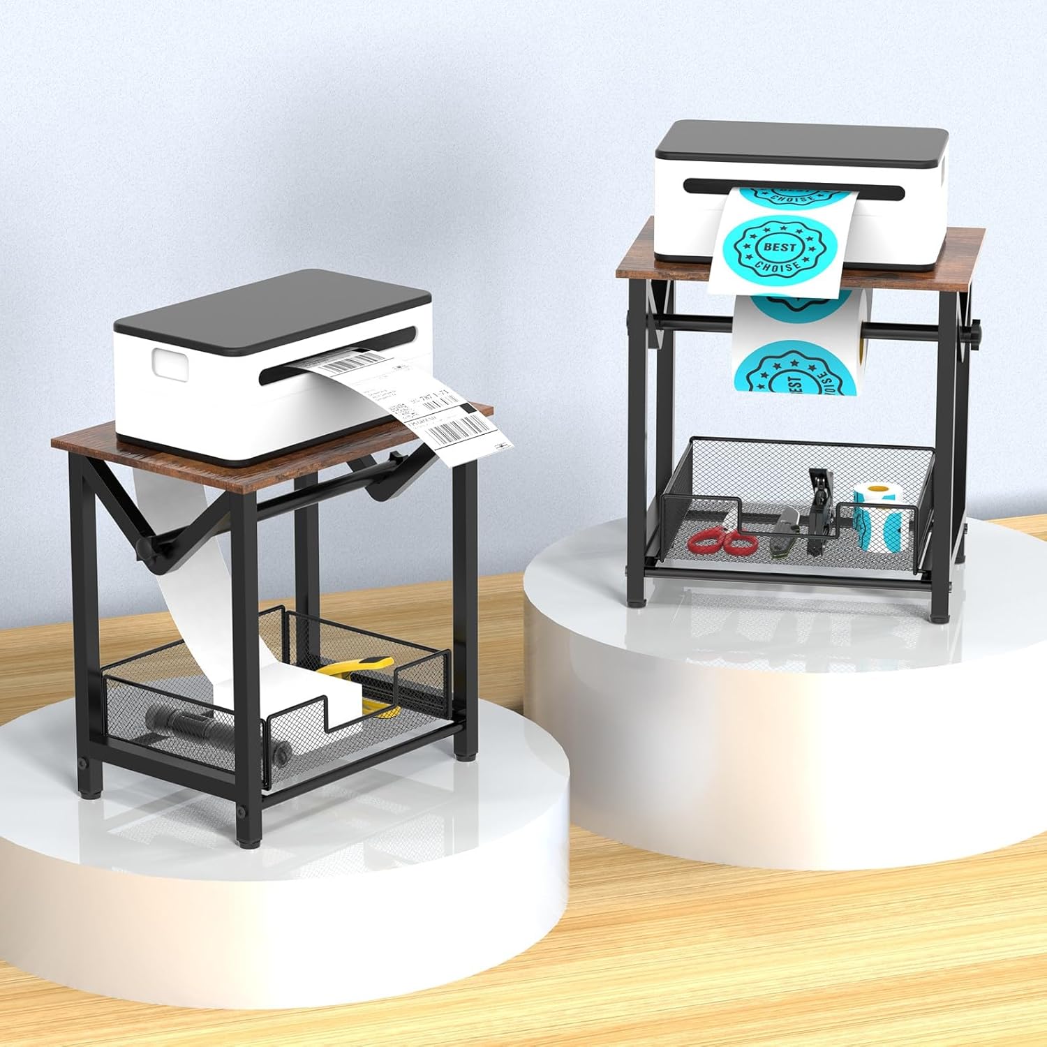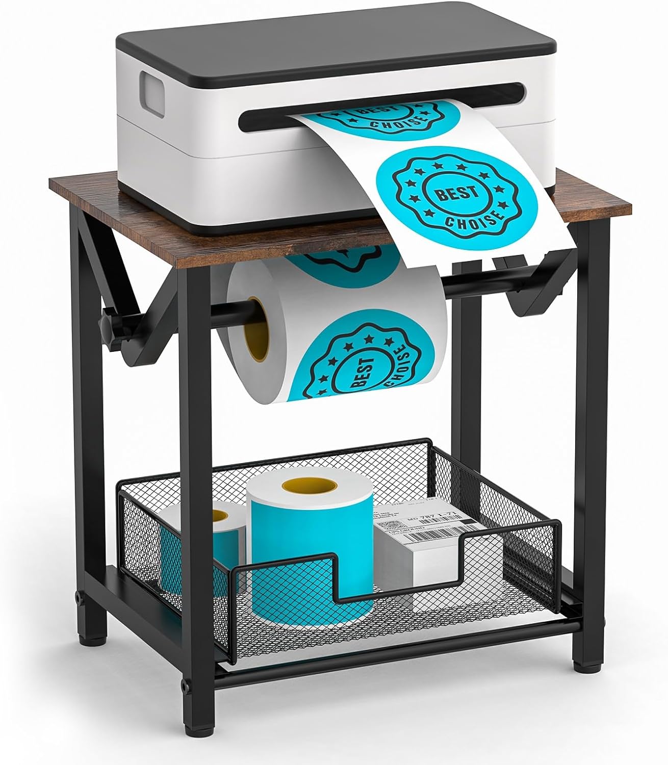 - Durable and Sturdy Materials:Specially customized for label dispenser, using high-quality solid wood panels and high-strength carbon steel frames,this thermal printer stand can support up to 18lb. The sturdy design and the anti-slip bottom pad ensure the holder stays firmly in place, providing long-lasting durability and stability.