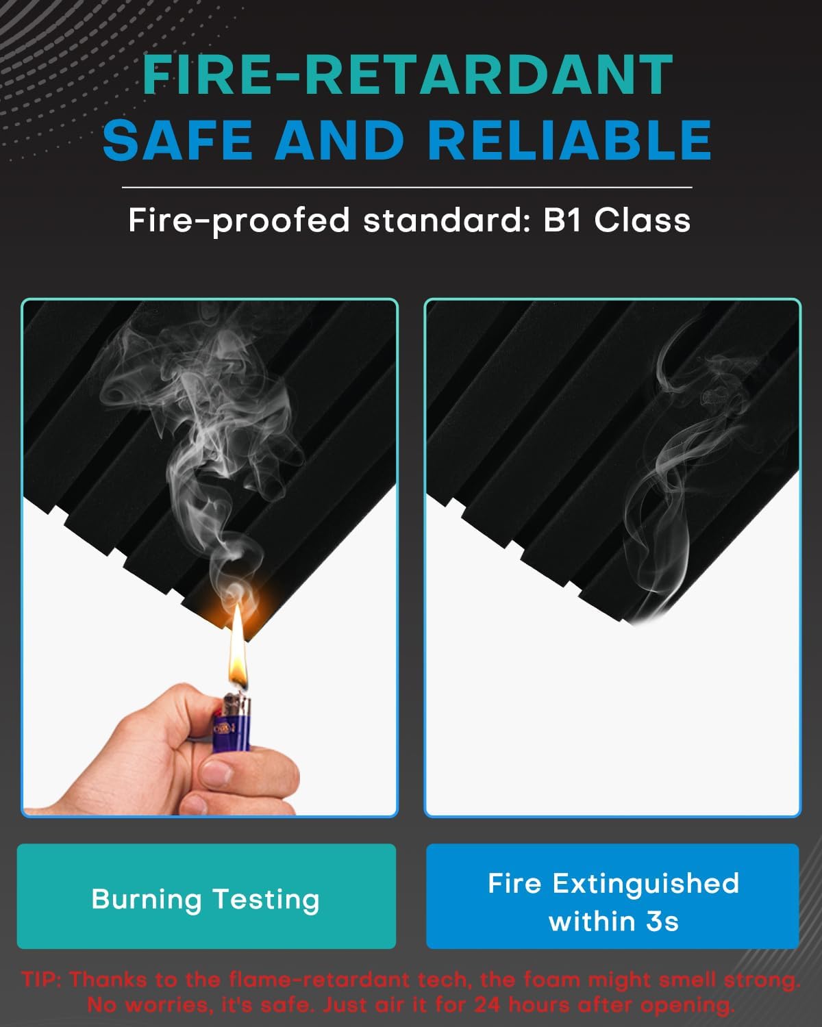 - 2 INCH ACOUSTIC PANELS: It is expertly crafted using professional machinery and skilled techniques. It undergoes a series of innovative high temperature processes, resulting in unparalleled elasticity and resilience, greatly enhancing durability and lifespan. You can expect the best sound management performance