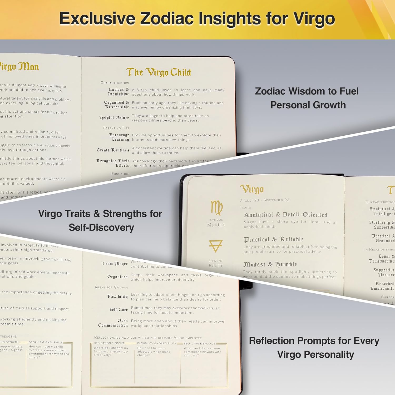 - Elegant & Sustainable Materials: Crafted with 160 FSC-certified, 100gsm cream-white pages and a premium vegan leather cover accented by a gold-foiled Virgo motif.
