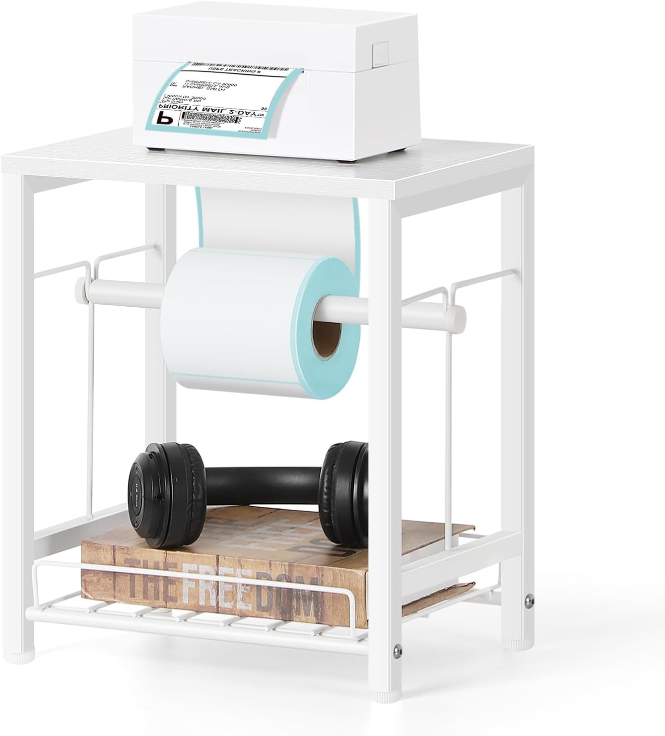 Label Holder Thermal Printer Sticker Stand Label Roll Holder for Rolls and Fan-Fold Labels, Desktop Printer Holder Label roll Dispenser for Small Business, Home Office Supplies, White