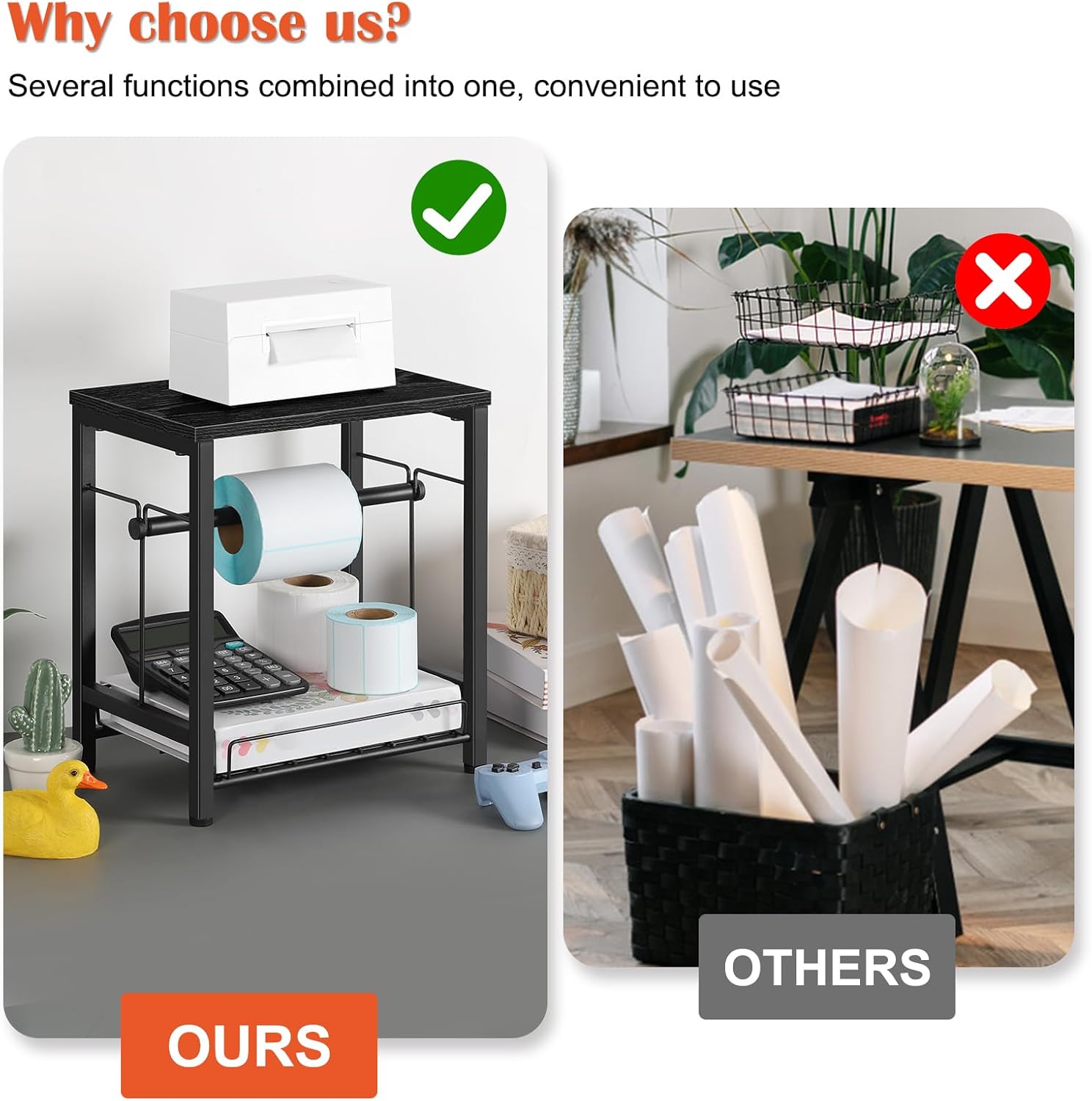 - 【Sturdy Frame】 The printer label holder is made of high-quality MDF wood and durable metal frame, it can support up to 30 pounds, accommodating various shipping thermal label and other office accessories. The label holder for thermal printer features foot pads to keep the label dispenser stable during use.