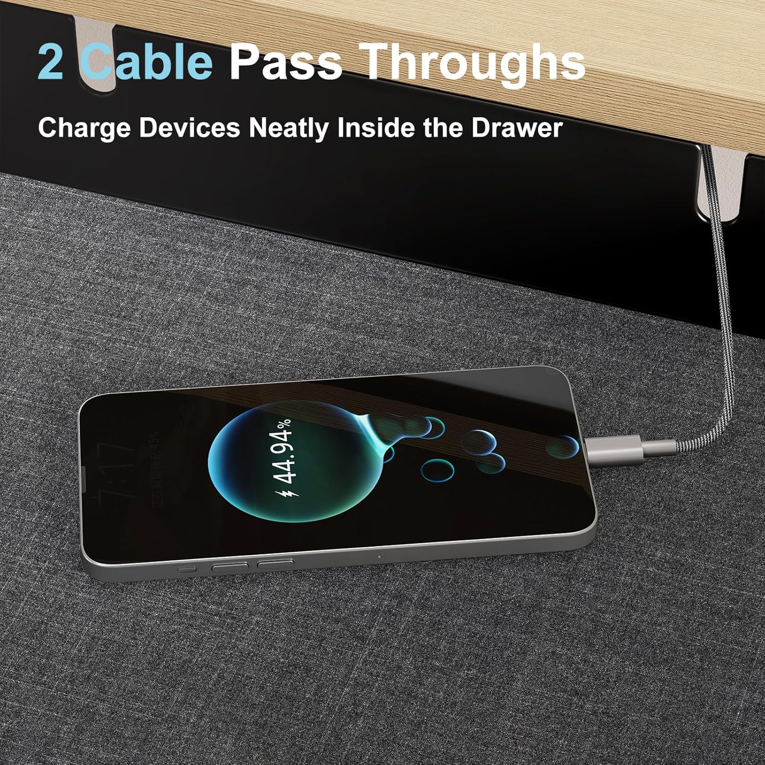 - FELT LINING & CABLE HOLE — A soft felt lining in the desk drawer organizer protects delicate items from scratches and noise, while the built-in rear cable hole keeps wires tidy and out of sight—perfect for chargers, small electronics, or beauty tools