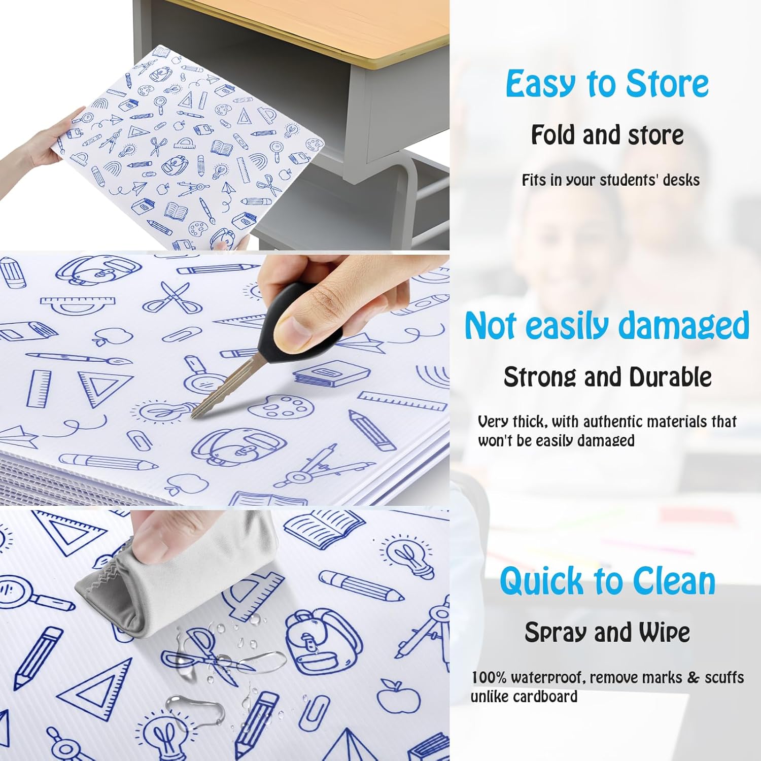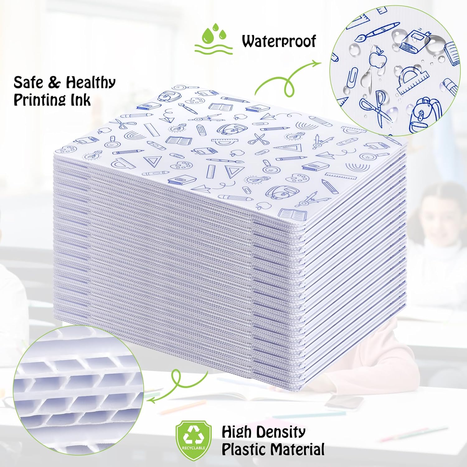 24 Pack Printing Privacy Floders for Student Desks - Durable Plastic Erasable - Testing Dividers for Classroom - Easy Clean Privacy Shields for Student - Includes Extra Labels White