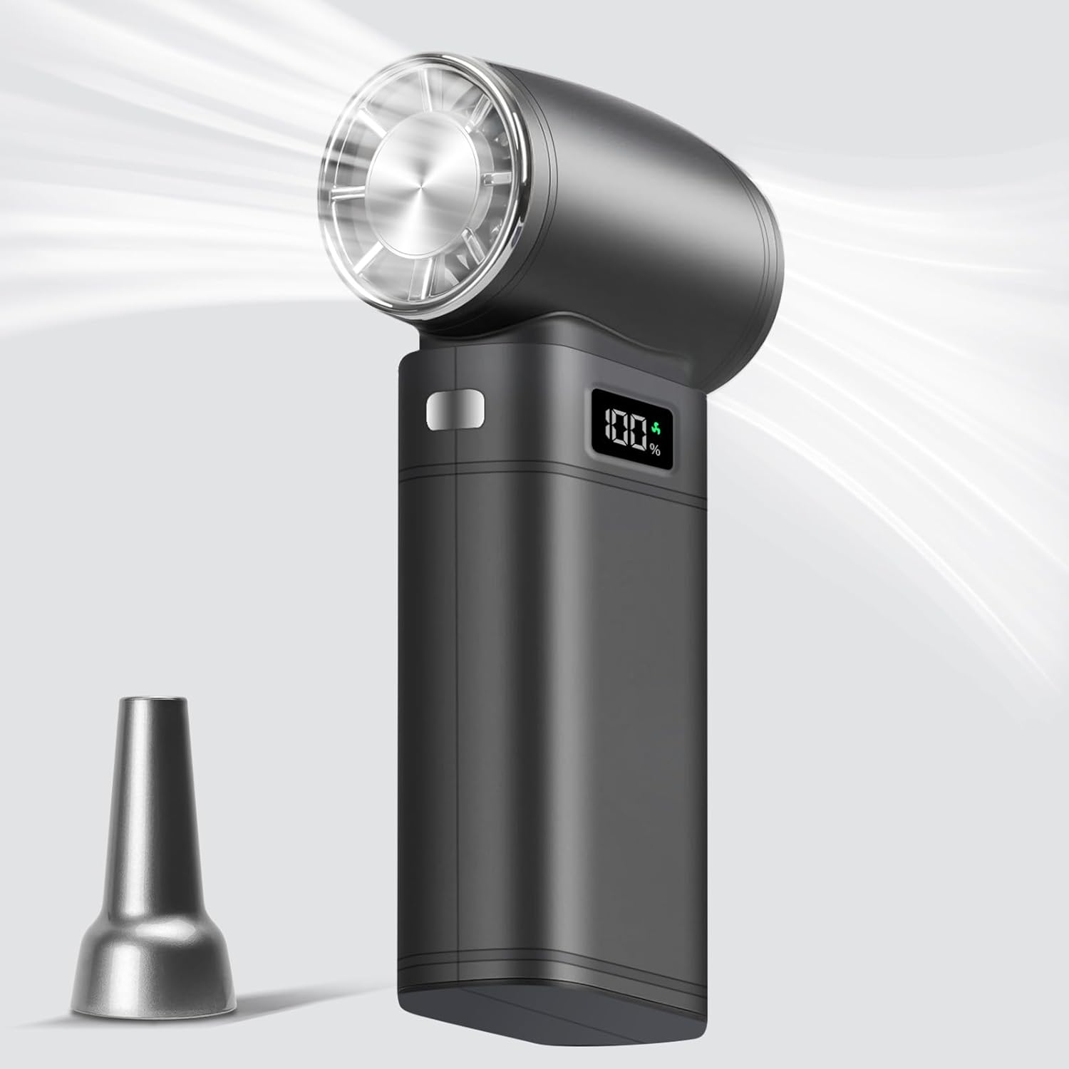 Handheld Mini Turbo Fan 120000RPM 6-Speed Turbo Power 9000mAh Portable High Speed Cooling Air Blower Cordless Air Duster Hair Dryer with LCD Display SOS Light for Travel Outdoor