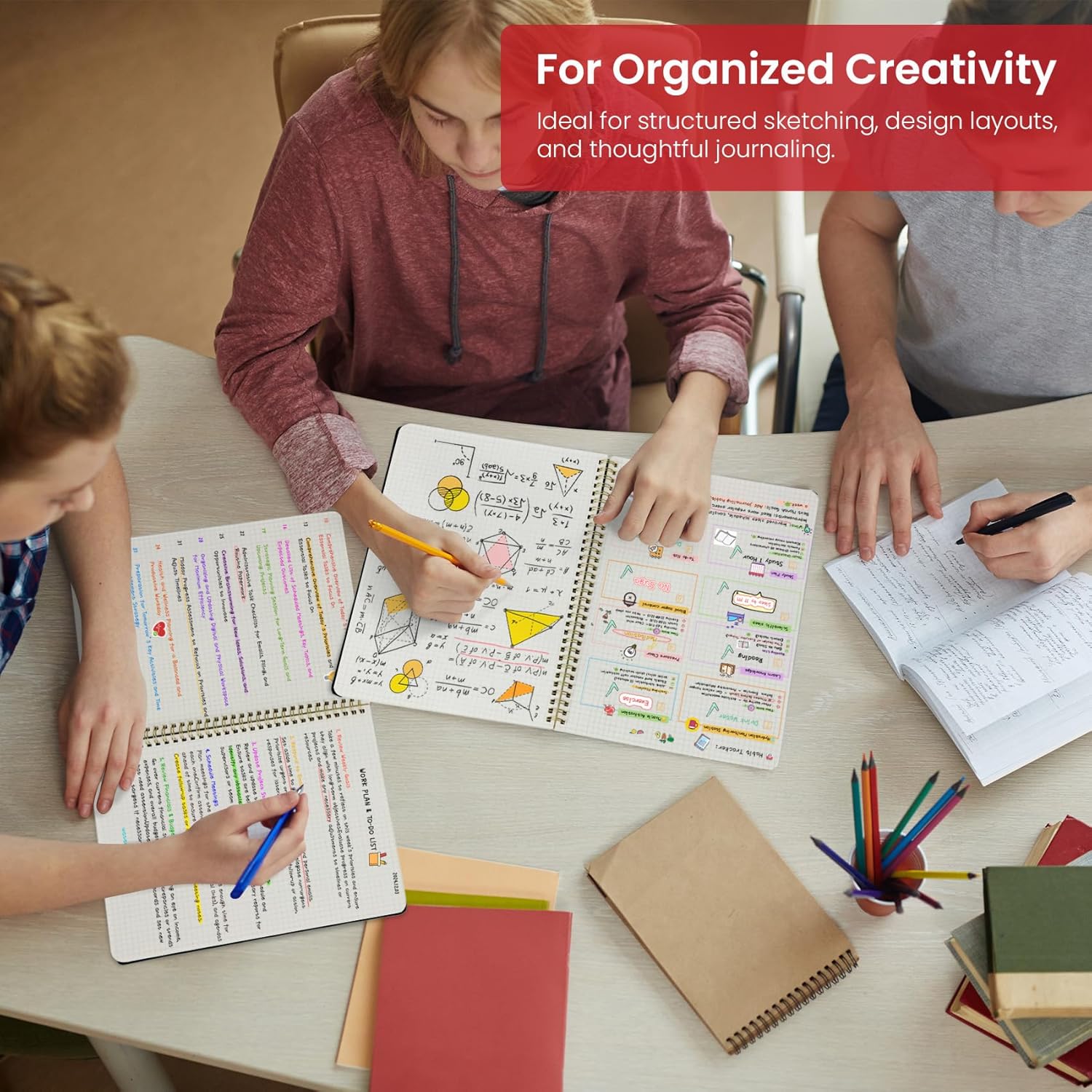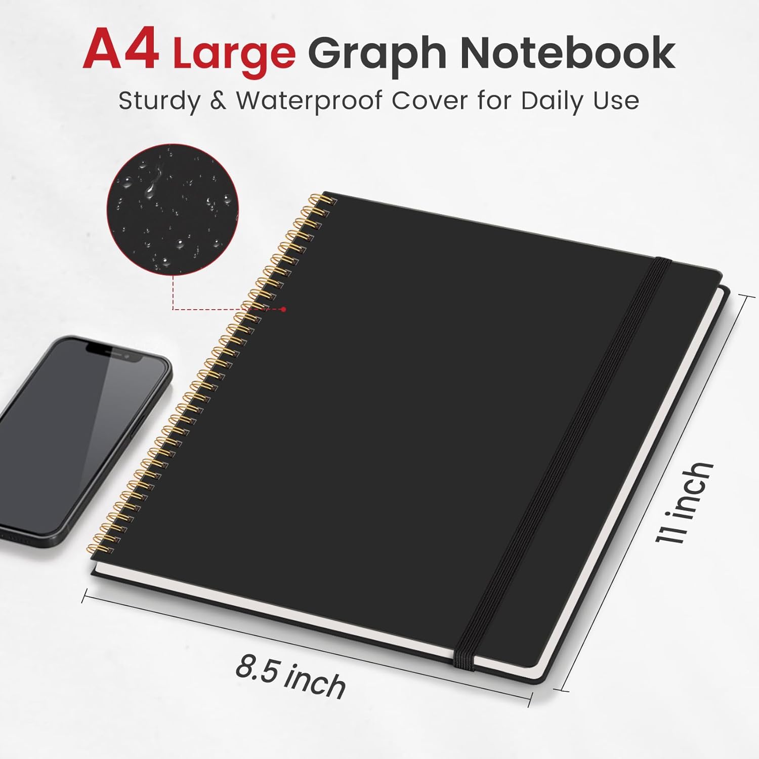 - Large A4 Graph Spiral Notebook: Measuring 8.5" x 11", this large A4 notebook provides graph pages for your creativity. With spacious grid pages, it's perfect for sketching, brainstorming, planning, and journaling—whether at work, school, or in your home office.