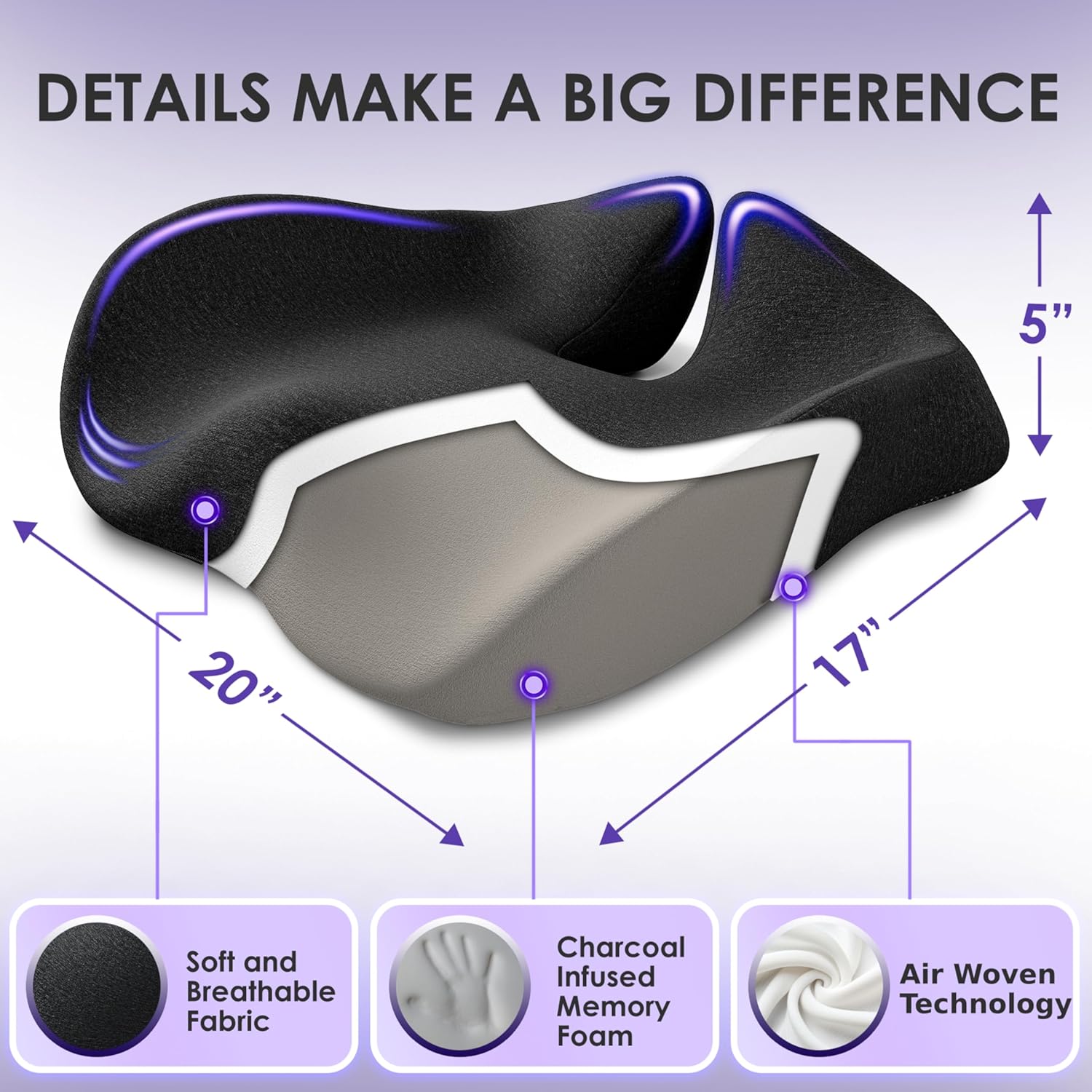 Pressure Relief Seat Cushion for Tailbone Pain – X Large Office Chair Cushion for Butt, Back Pain, Coccyx & Sciatica Pain Relief Pillow. Memory Foam Seat Cushions for Office Chairs (Original Black)