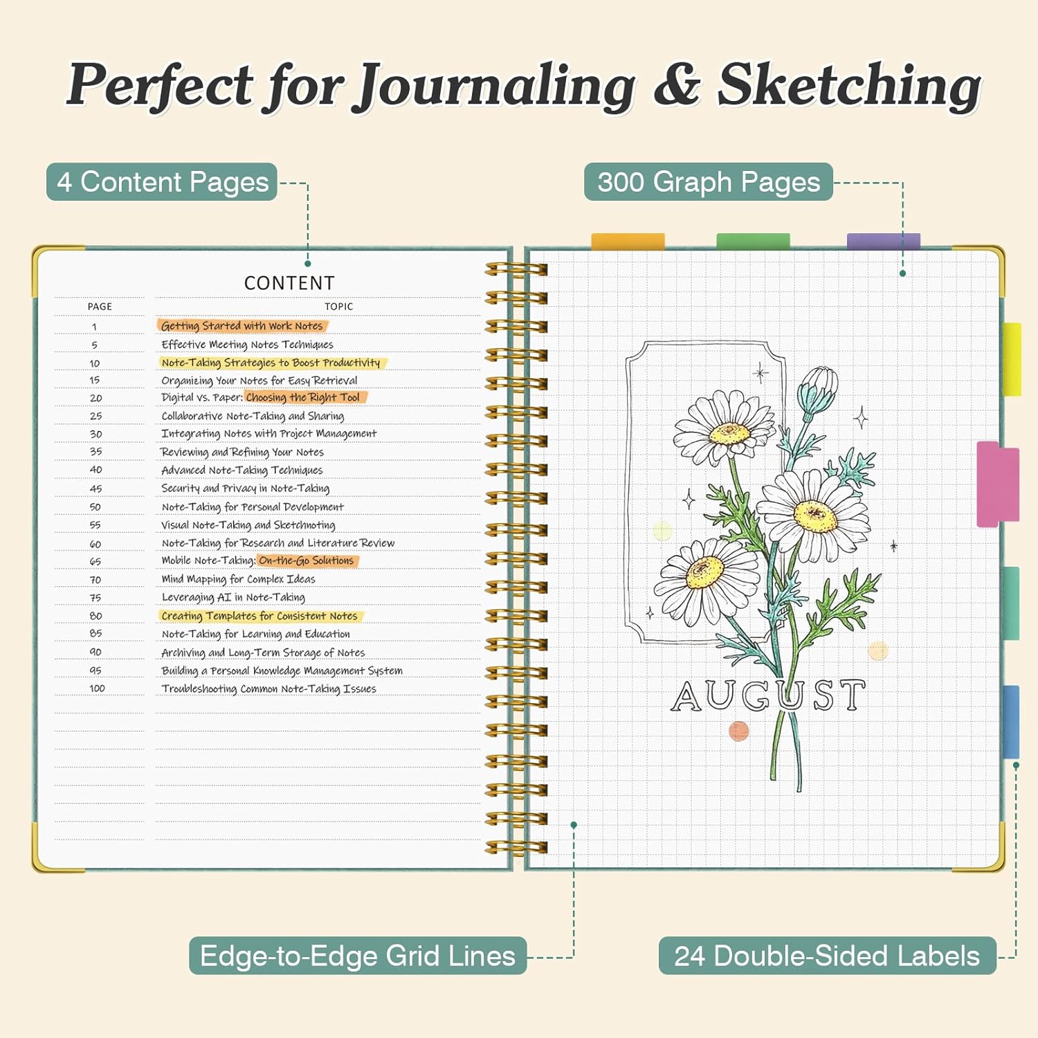 - 【Thoughtful Graph Journal Notebook】Grid notebook includes an elastic closure band to keep it securely closed and features an expandable back pocket for storing loose notes or cards. Additionally, it comes with 24 colorful tabbed stickers for easy sectioning and note classification, perfect for school, office, home, work organization, college, business, adults.