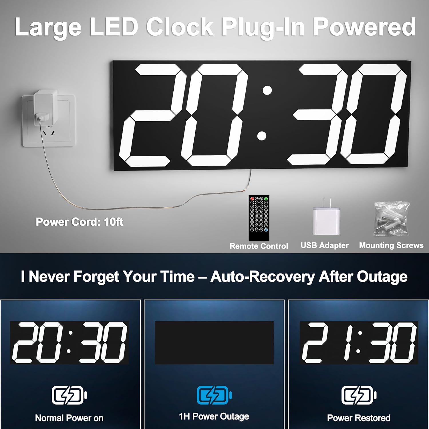 - 【Digital Clock Large Display & Hassle-Free Setup】 Sturdy color-printed packaging designed to minimize shipping damage, with all accessories included—no additional purchases required. Quick installation: screw-mounted wall setup + plug-and-play operation. No technical expertise needed! For assistance, contact us directly via Your Orders > Contact Seller. We provide rapid response support to resolve any concerns.