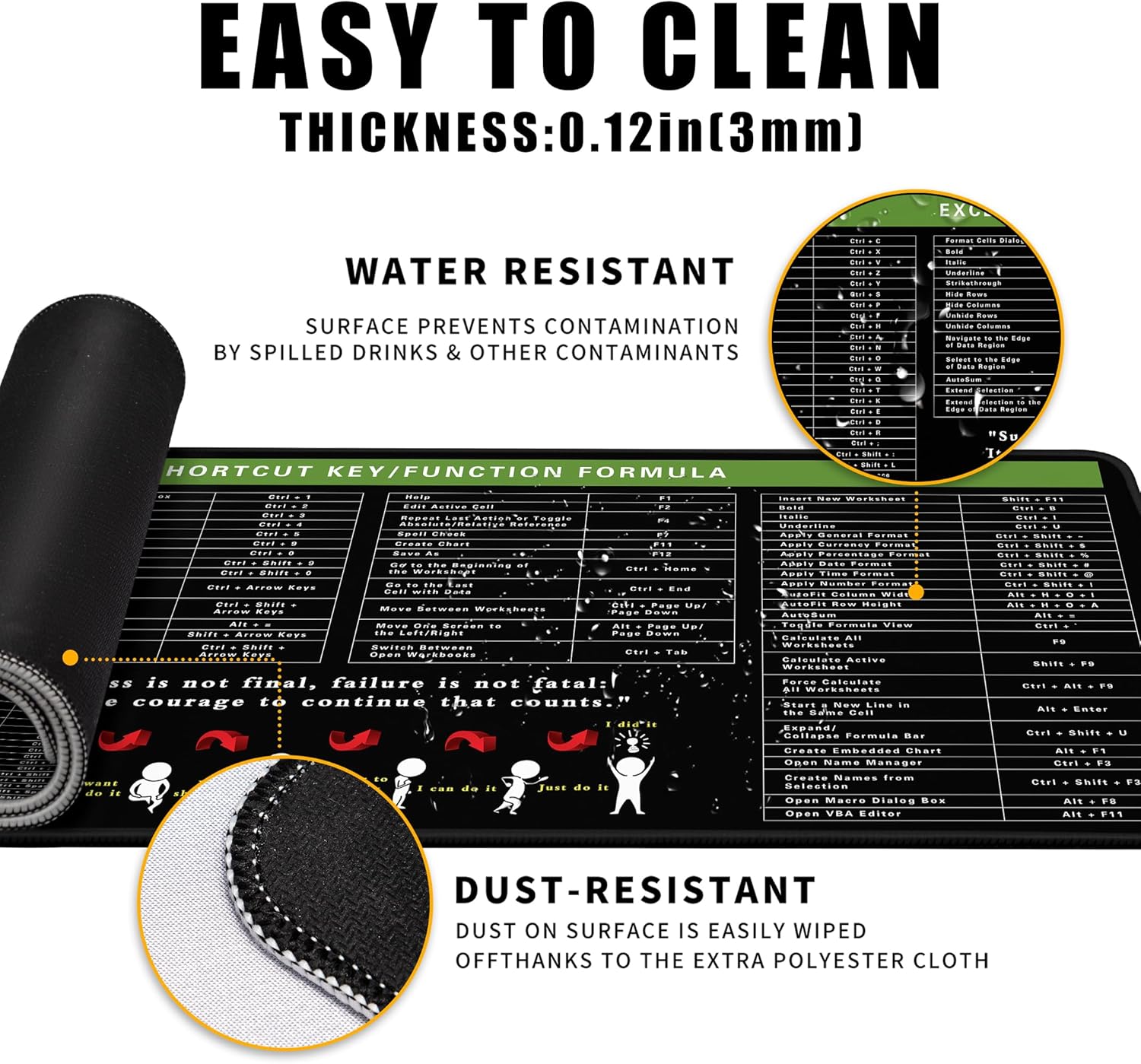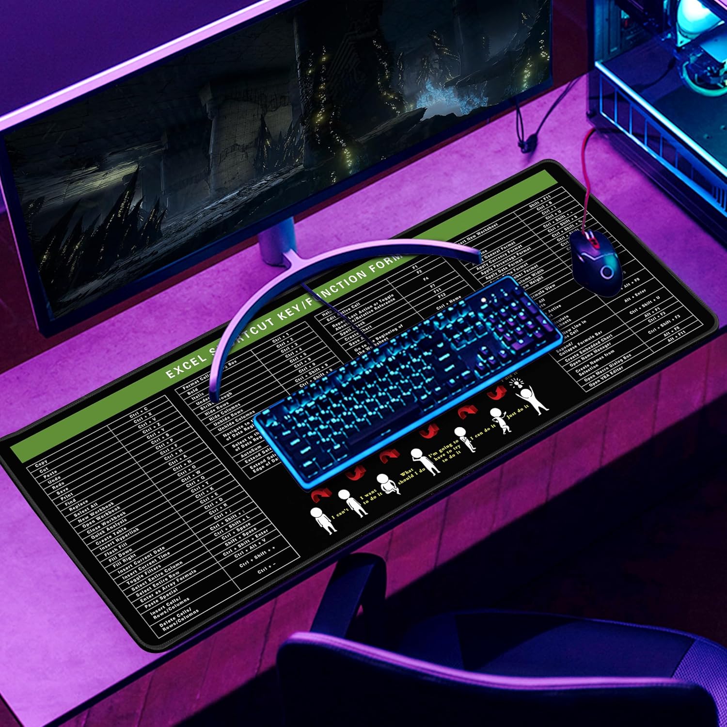 Excel Cheat Sheet Desk Pad Excel Shortcut Keys Mouse Pad Gaming Mouse Pad Desk Accessories Waterproof Non-Slip Large Computer Mat, 31.5x11.8 in (Excel Cheat Sheet)