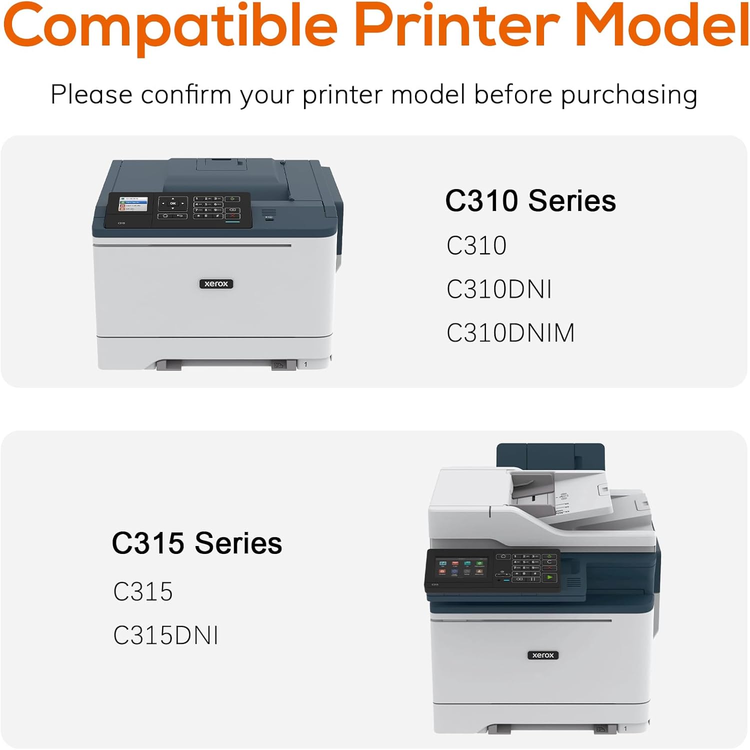 - Certified Compatibility: Compatible with Xerox C310, C315, C310DNI, C310DNIM, C315DNI printers