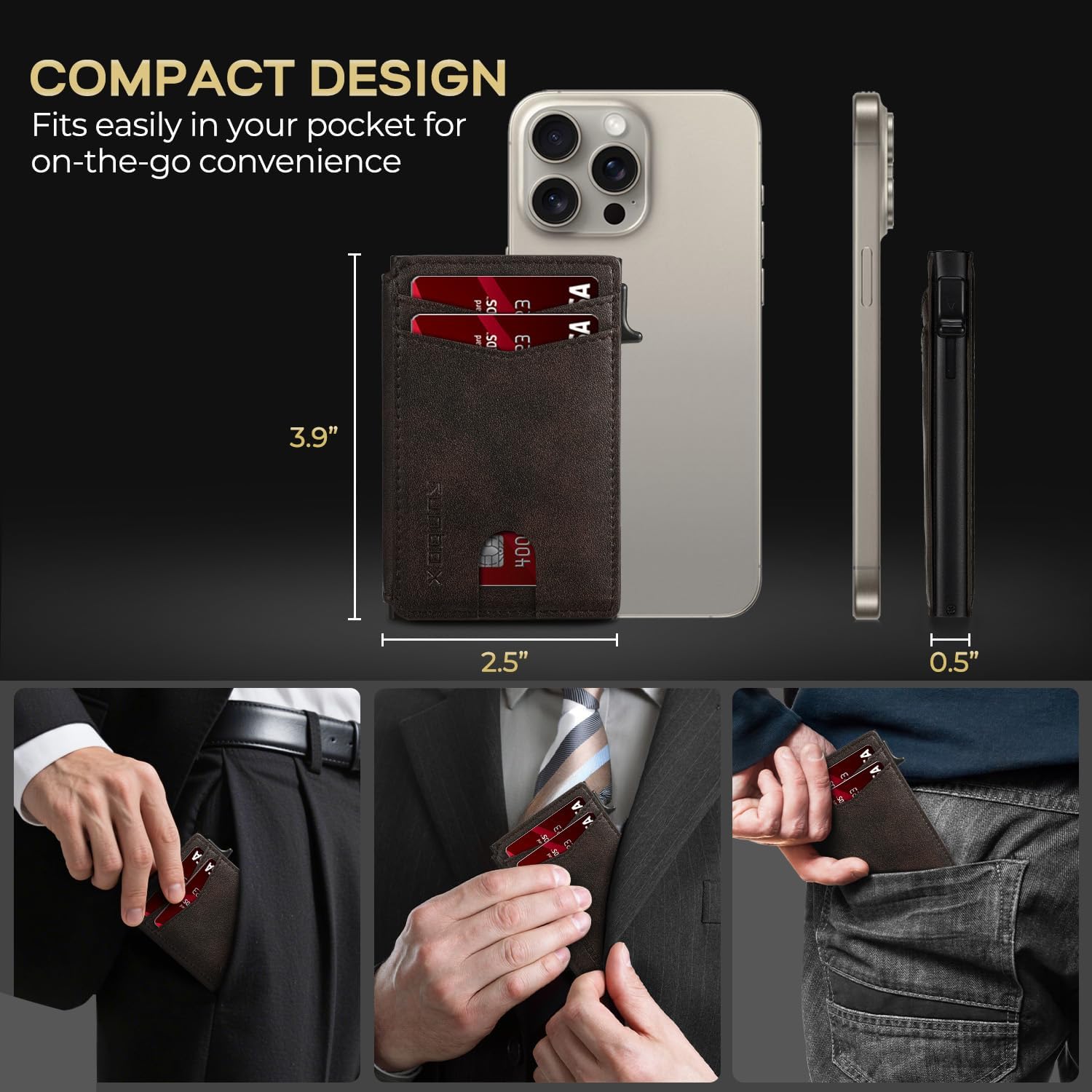 - Military-Grade RFID/NFC Protection: Built with solid aluminum shielding, this smart wallet blocks 13.56MHz signals to prevent digital theft. Safeguard credit cards and IDs from skimming devices – your data stays secure