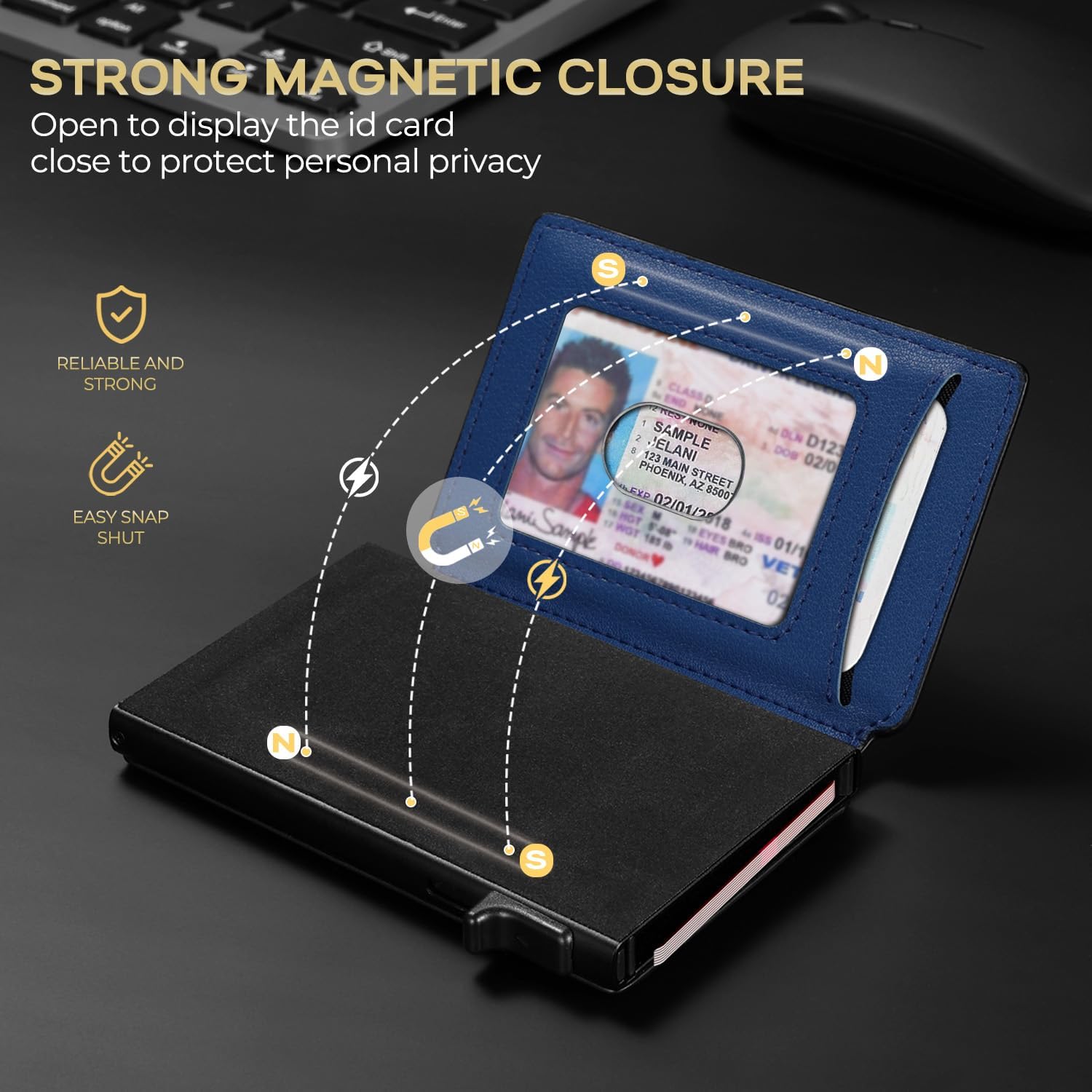 Slim Card Wallet for Men with ID Window – Minimalist RFID Wallet, Pop-Up Function, Ultra Thin Design, Metal Business Card Case Holds 8+ Cards, Gifts for Men, Men's Accessories