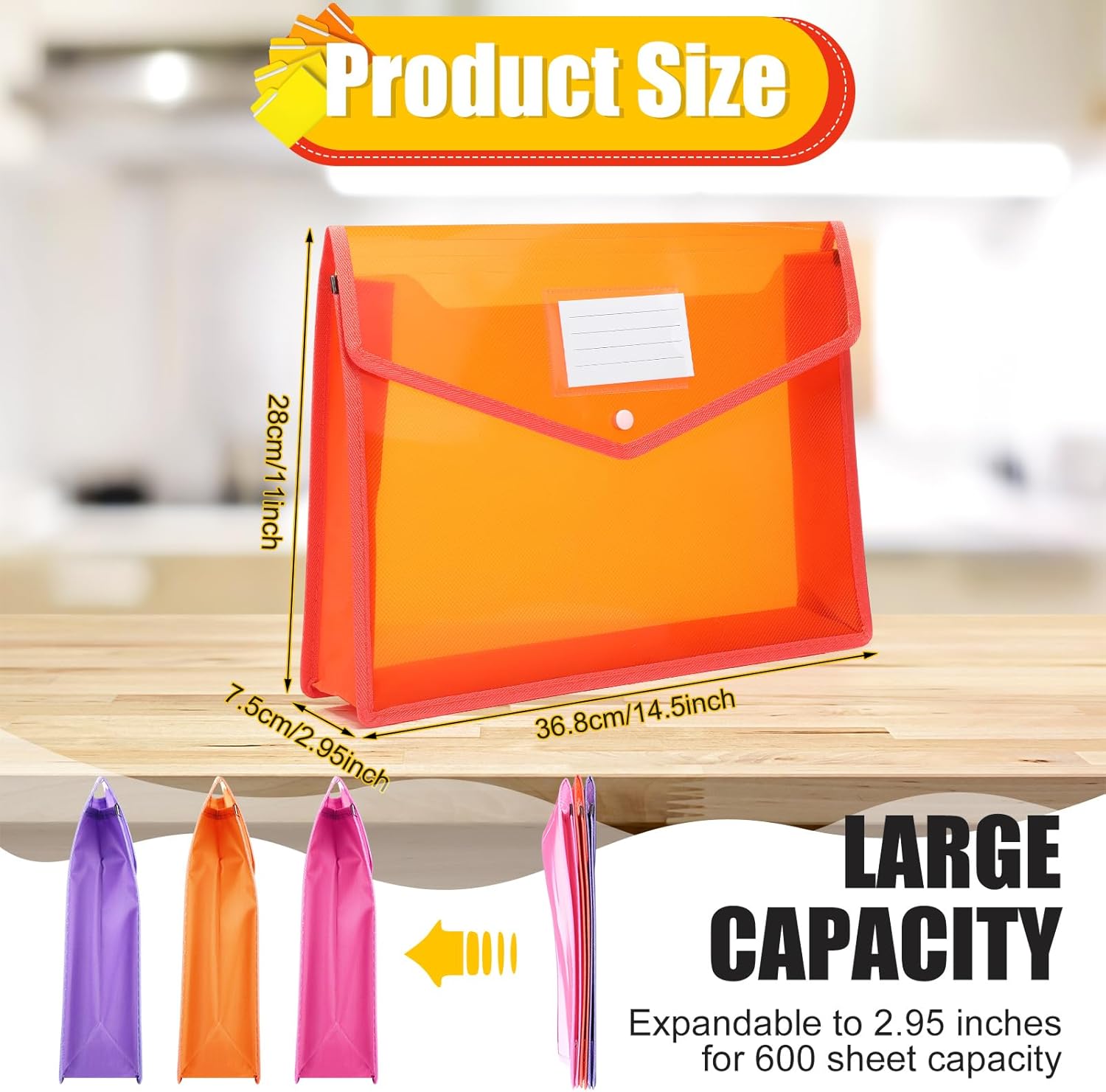 - Diverse Colors to Distinguish: you will receive 3 pieces of plastic envelopes with snap closure in 3 diverse colors, namely pink purple orange; These diverse colors can help you to distinguish different documents; And the enough quantity and colors can meet your daily use and also save your energy to find more folders