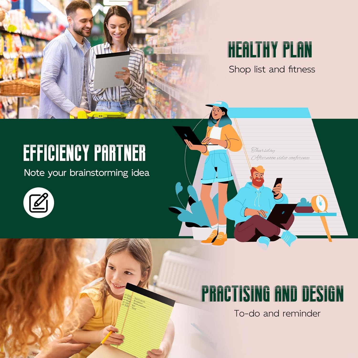 - 【Perforated Note Pads】:These note pads 8.5 x 11 feature a visible perforation at the top, making it easy to tear out from the notepad when necessary. On the same time, there will not be ripping in irregular neither. Due to the wider title on the top, it provides extra spacing for writing major priority. Organizing your notes/ list/ reminder in neatly and clearly. Whether for work, school, or personal use, these writing pad 8.5x11 sheets will make your life easier.