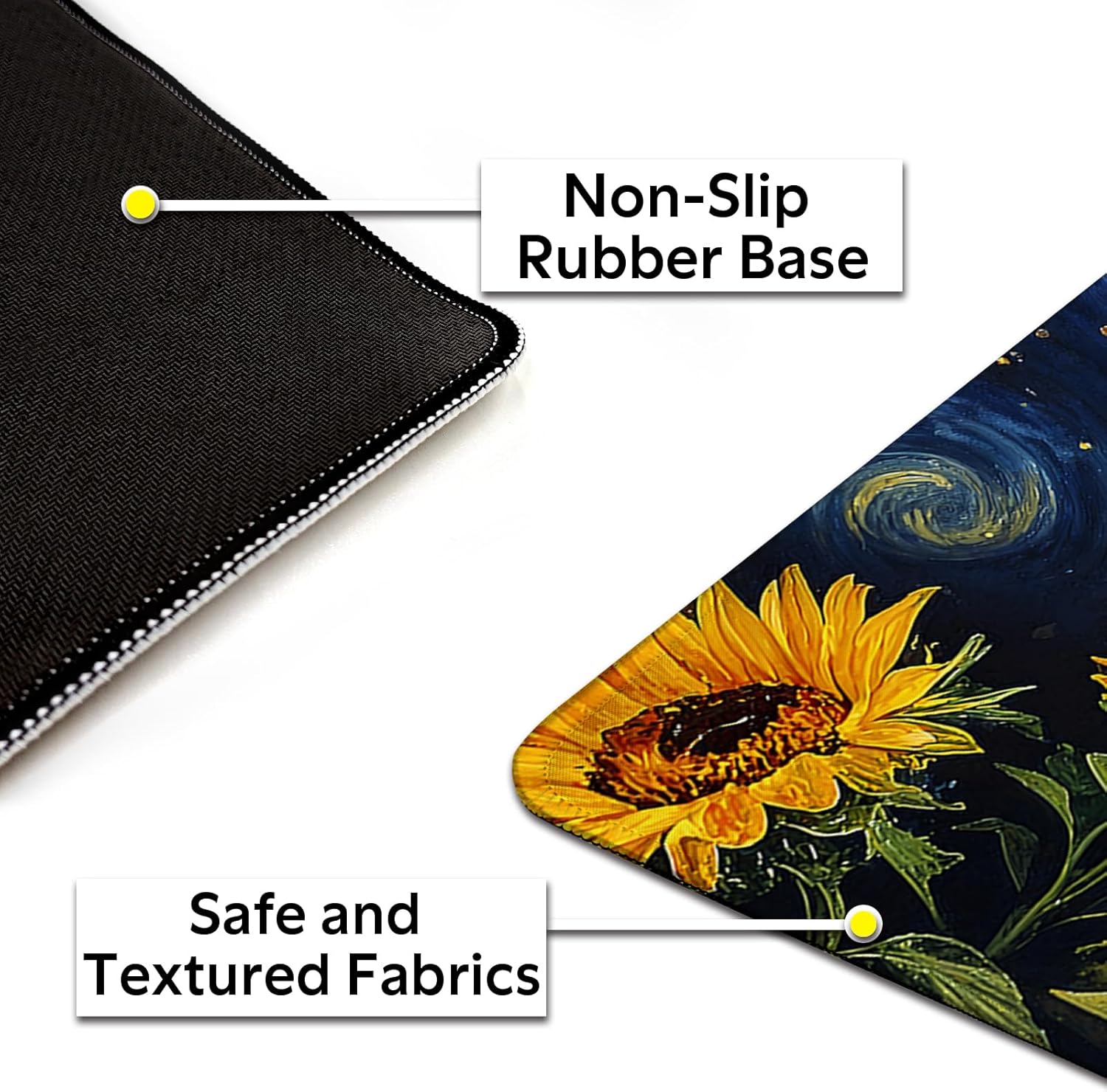 - Large Size: Sunflower Cat mouse pad measures 31.5 x 11.8 inches, providing ample space for your mouse, gaming keyboard, and other desk items while protecting your desk from scratches and stains.
