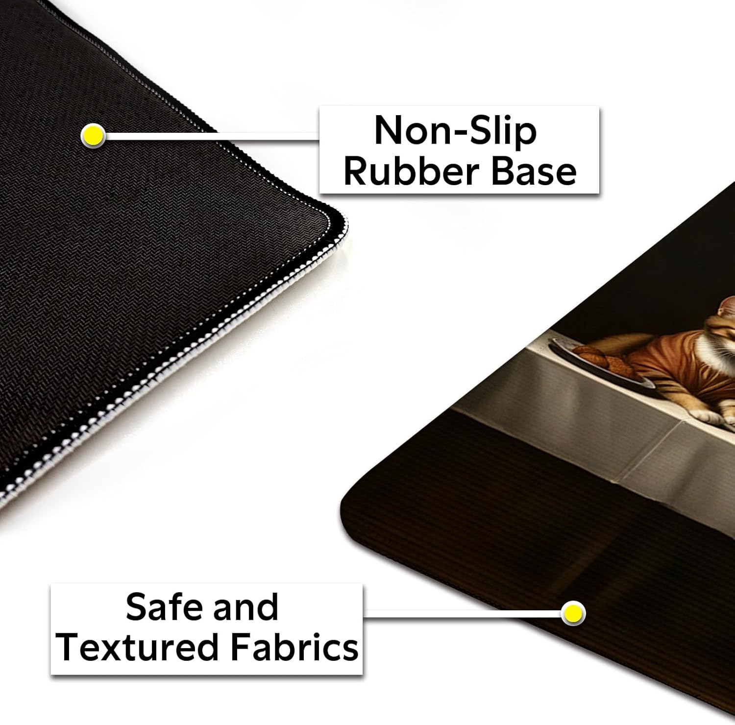 - Large Size:Funny Cat mouse pad measures 31.5 x 11.8 inches, providing ample space for your mouse, gaming keyboard, and other desk items while protecting your desk from scratches and stains.