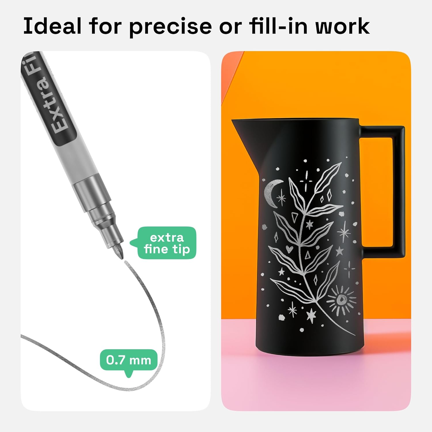 - Extra-Fine Tip: Each oil paint pen is made for fine line work. Detail your DIY project with these oil based pens. Each oil based paint marker will add some shine to your art, no matter the occasion โ Christmas, birthday, or wedding decorations!