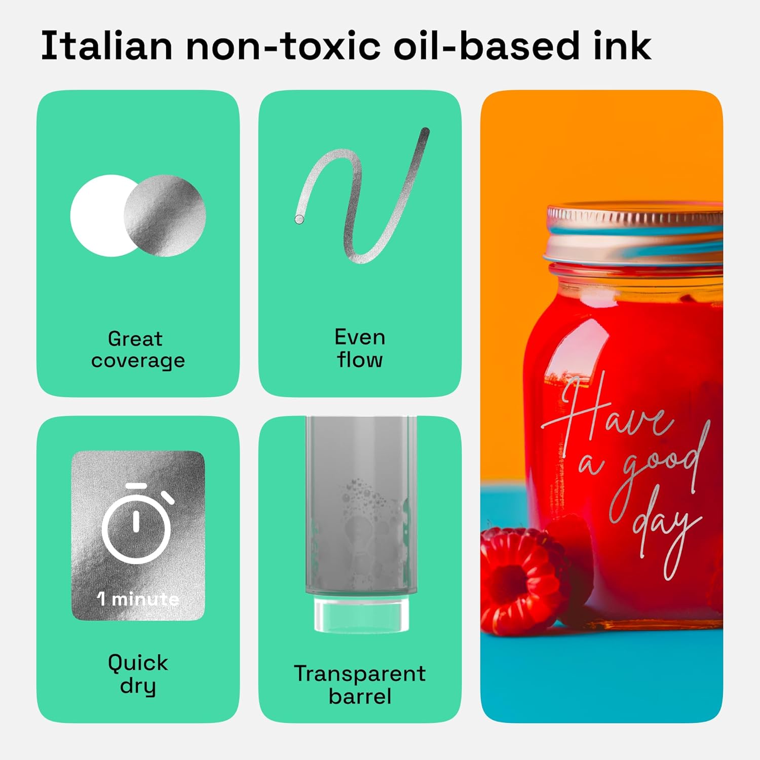 - Non-Toxic: This oil paint set conforms to ASTM D-4236 safety standards. Plus, thereโs no odor with your oil markers paint pens. Each silver marker is ready to use with any project and is safe for kids and adults!