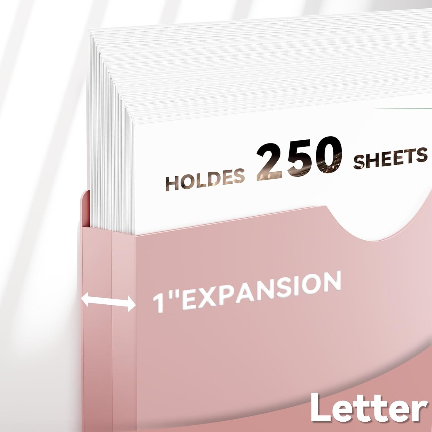 Plastic 1 Inch File Jackets Letter Size, Expanding File Folde for Documents,Upgrade Color,12 Pack Manilla Pocket Folders,Heavy Duty Expansion Pocket Files with Straight Cut Tabs,Morandi Color