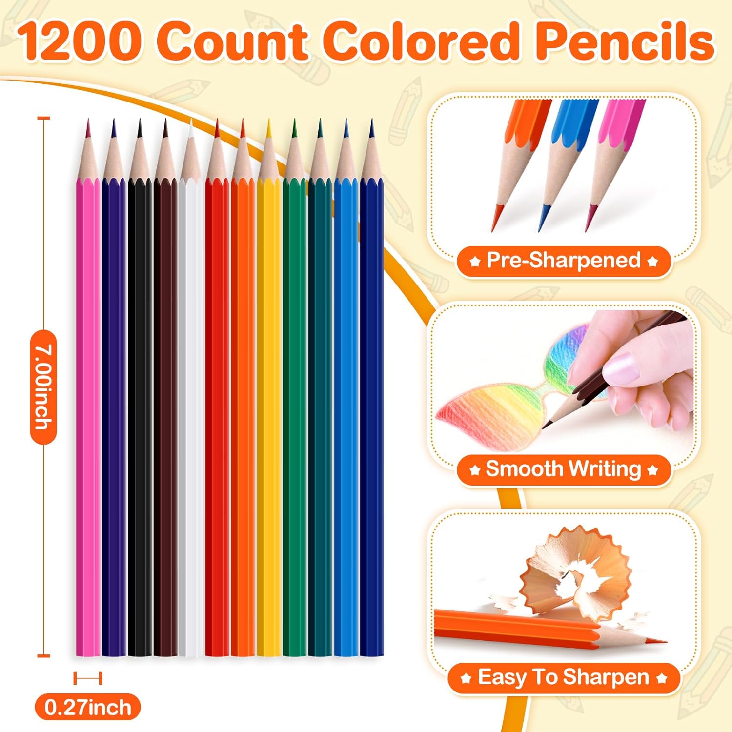 Shemira 100 Pack (1200 Count) Colored Pencils Bulk Set for Kids, Pre-sharpened Coloring Pencil in 12 Colors, Erasable Color Pencils', School Supplies for Kids Teachers, Back to School Supplies