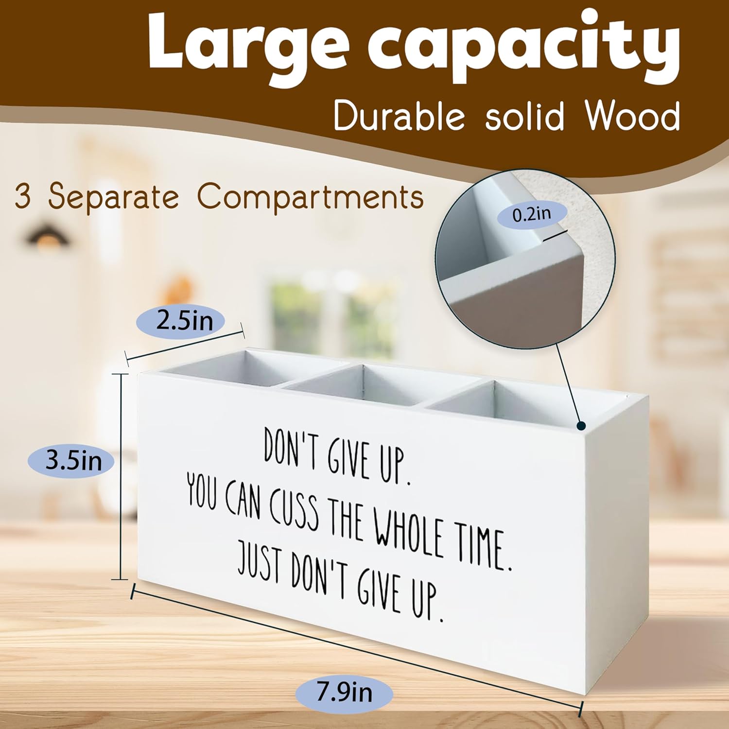 Funny Motivational Pen Holder for Desk, Humorous Inspirational Gifts for Coworkers Friends Women Men, Don't Give Up Funny Wooden Pen Pencil Holder Organizer for Office Desk Accessories