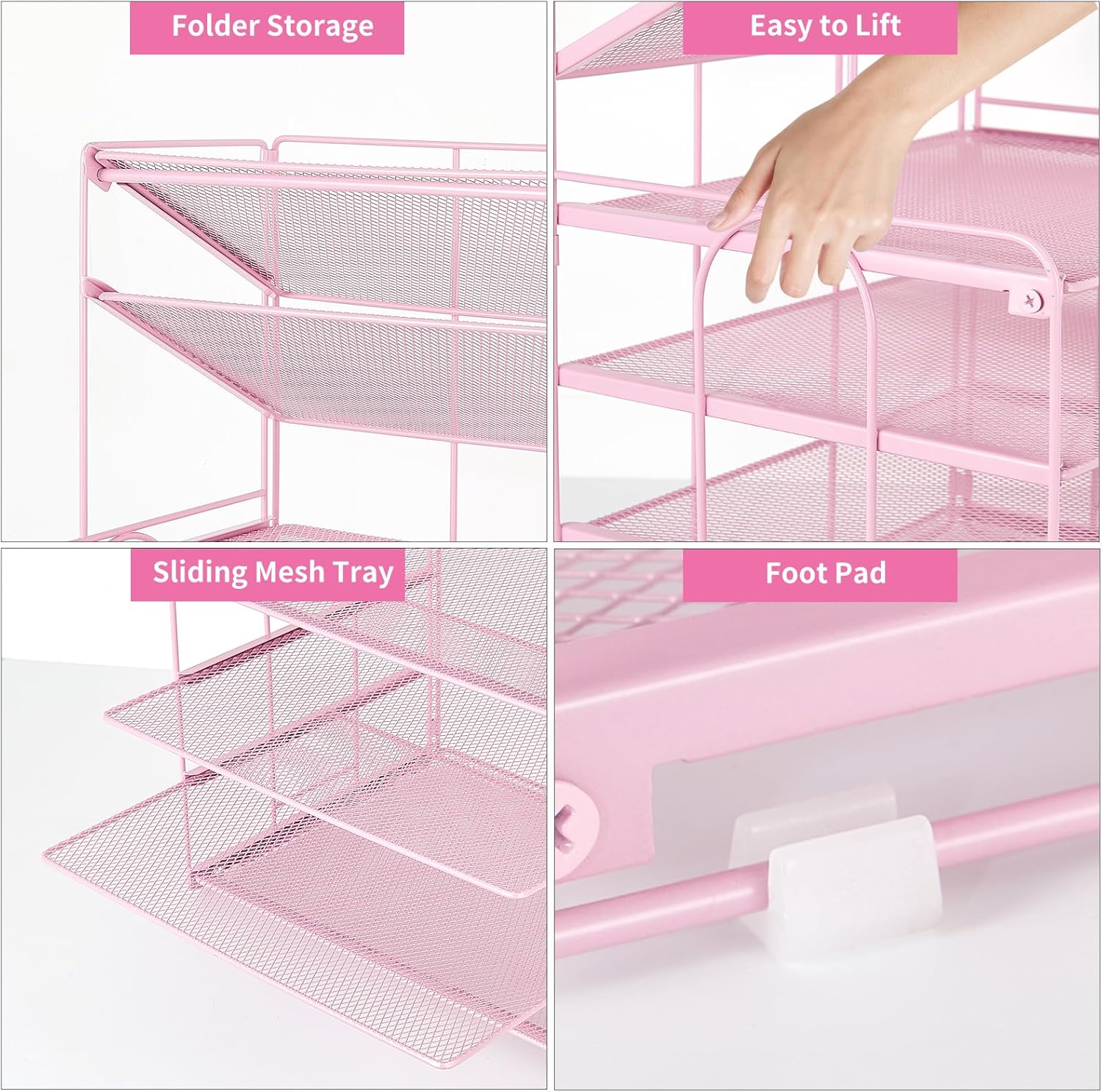 6-Tier Letter Tray Paper Organizer, Desk Organizers and Accessories, Desktop File Organizer, Office Desk Accessories for Office Supplies(Pink)