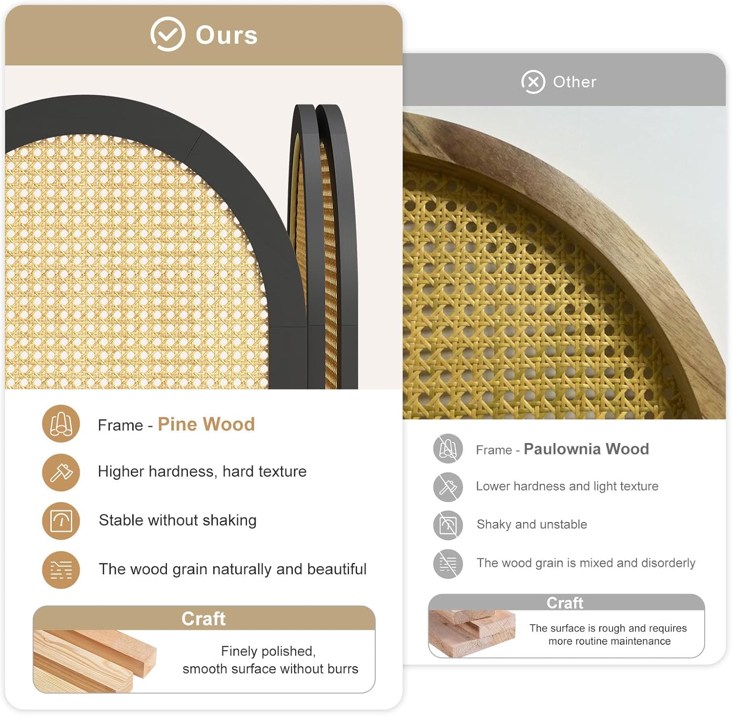- Premium Pine Wood Frame: Crafted from durable pine wood (not common paulownia), this frame offers higher density and greater wear resistance. Natural pine grain adds elegant texture, while minimalist rattan design and warm tones bring a cozy, organic touch to your space