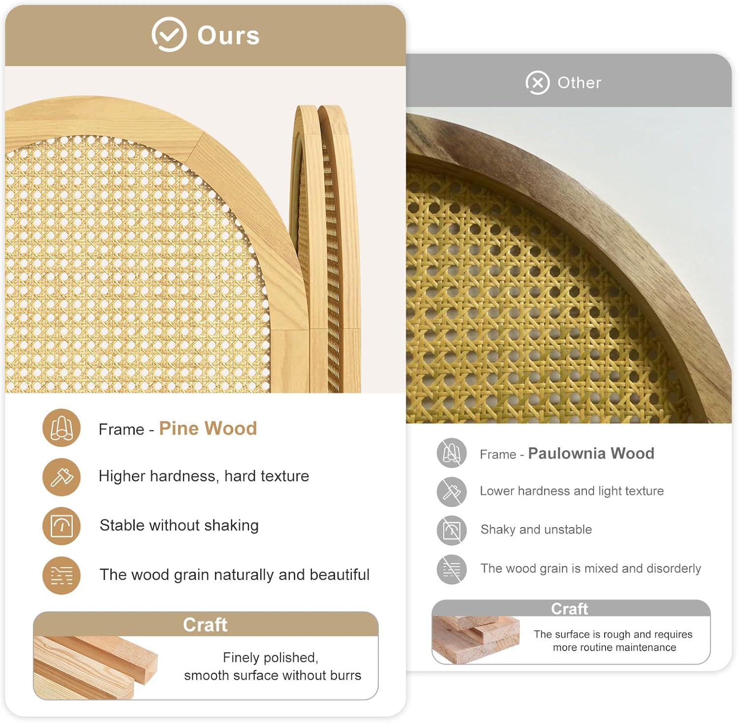 - Premium Pine Wood Frame: Crafted from durable pine wood (not common paulownia), this frame offers higher density and greater wear resistance. Natural pine grain adds elegant texture, while minimalist rattan design and warm tones bring a cozy, organic touch to your space