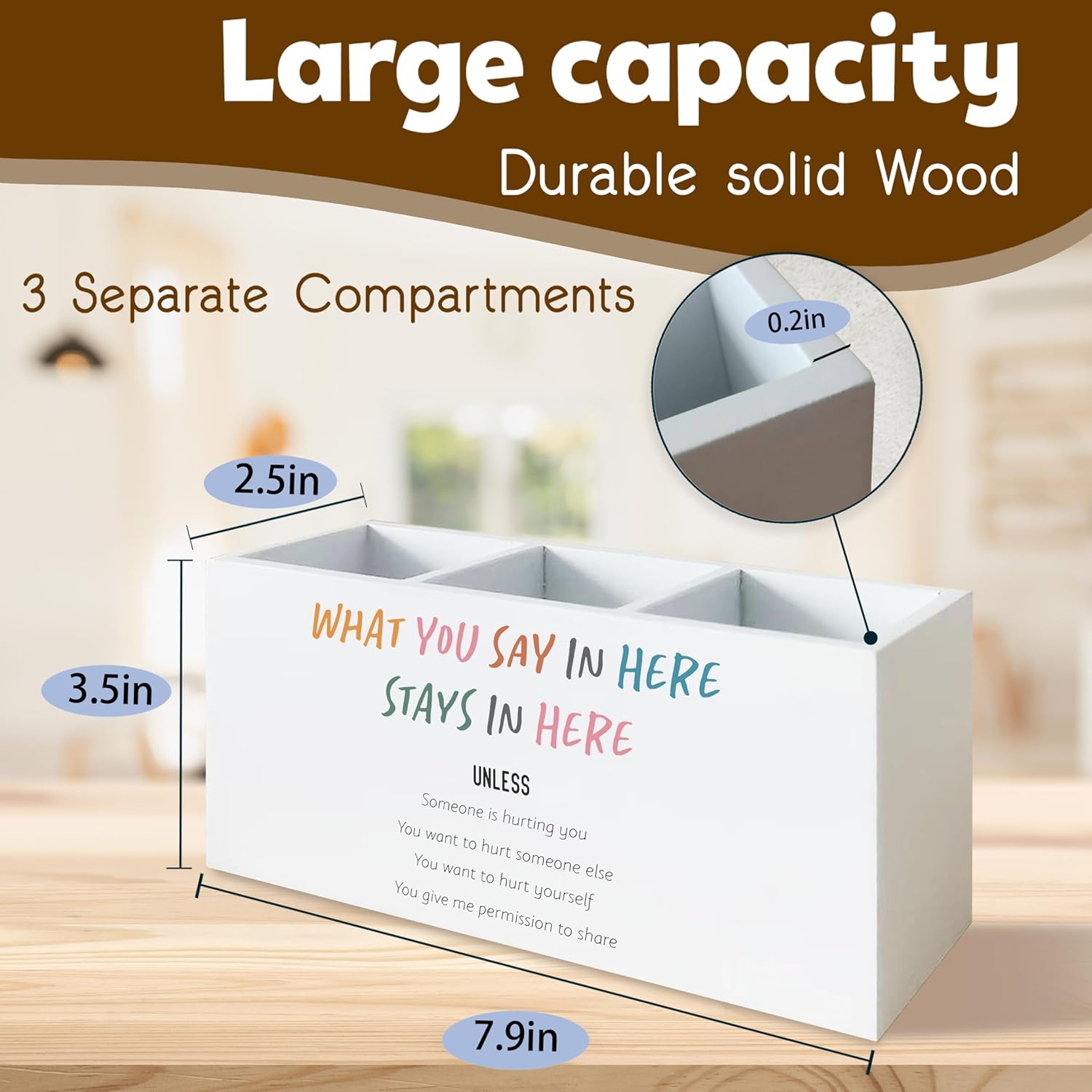 Mental Health Gifts Pen Holder for Desk, Mental Health Office Decor, What You Say in Here Stay in Here Wooden Pen Pencil Holder Organizer for Therapist Counselor Office Desk Accessories
