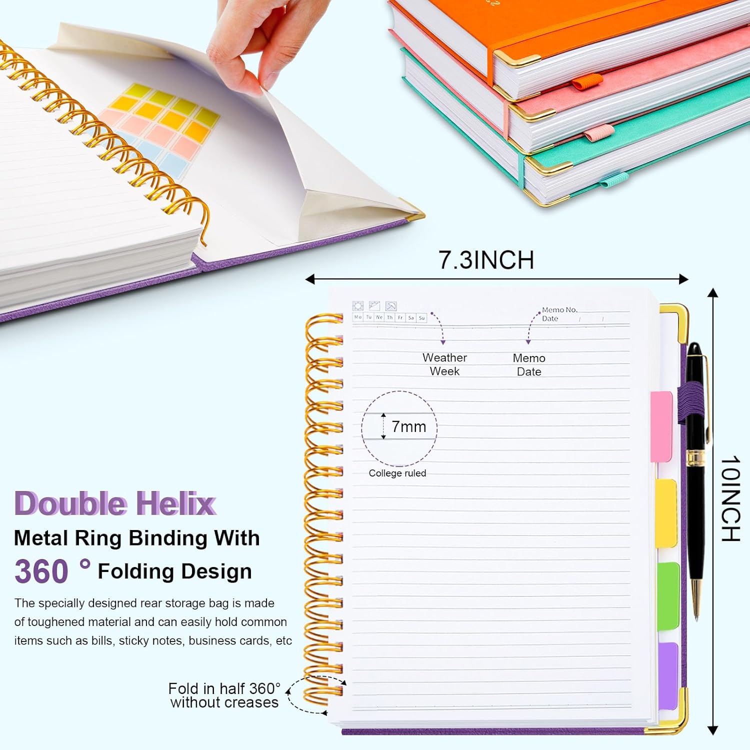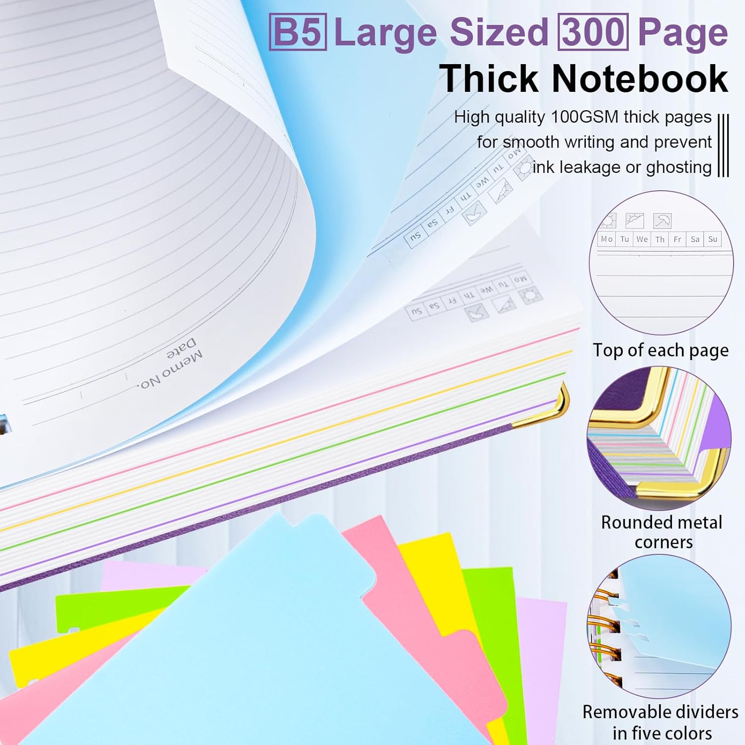- 300 pages thick notebookļ¼This college ruled spiral notebook features 300 pages of thick paper that resists ink bleed and ghosting. The spacious B5 layout (8"x10") makes it perfect for long-term planning, study notes, and personal journalingāless bulk, more value.