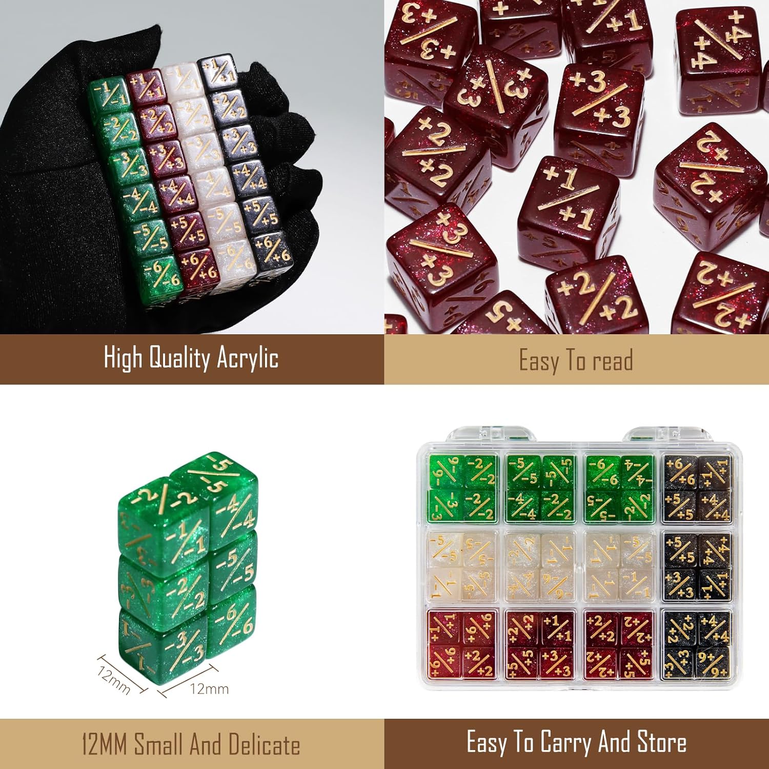 - EASY TO STORAGE & PORTABILITY - Each dice counter size is approximately 0.47inch/ 12mm. Take up less space in your bag. This abilities keywords counter dice comes with a transparent box with 12 slots, making it easy to store and carry these dice anywhere you go without having to worry about losing them.