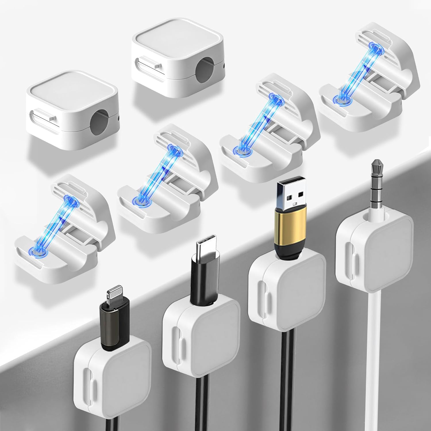 10 Pack Desk Cable Strong Adhesive Management Clips,Organize Phone Charging Magnetic Cable Wire Holder, Easy to Open, for Desk, Wall, Office, Car,Nightstand(White)