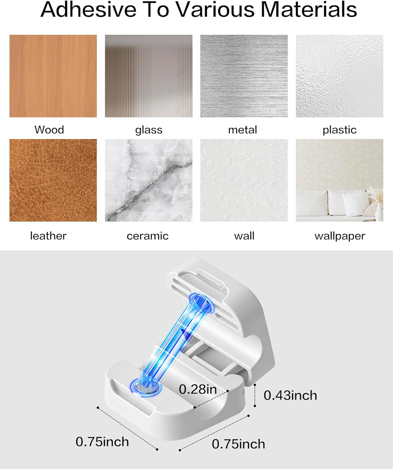 - 【 Small volume design 】 Size: 0.75 "X 0.75" X 0.43 ", weight: 3g. Unique small size design, can better save space, tips: before using the clamp, be sure to clean the mounting surface, and press hard for 10 seconds, The best adhesion is achieved after waiting for 12 hours.