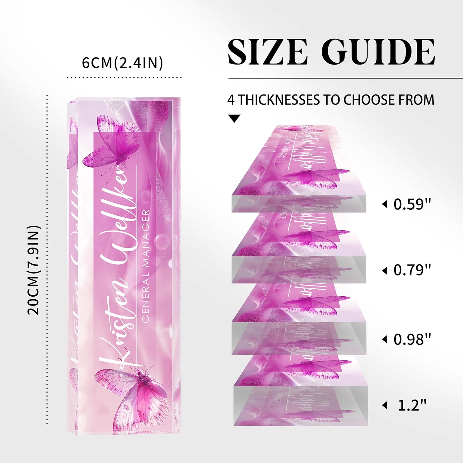 - 🍀 High Quality Acrylic - The name plate is made of high-quality transparent crystal acrylic blocks and printed on the back of the name plate using UV HD printing technology. The text and beautiful floral patterns present a 3D stereoscopic effect. The color is bright and will not fade, and can be used for a long time.