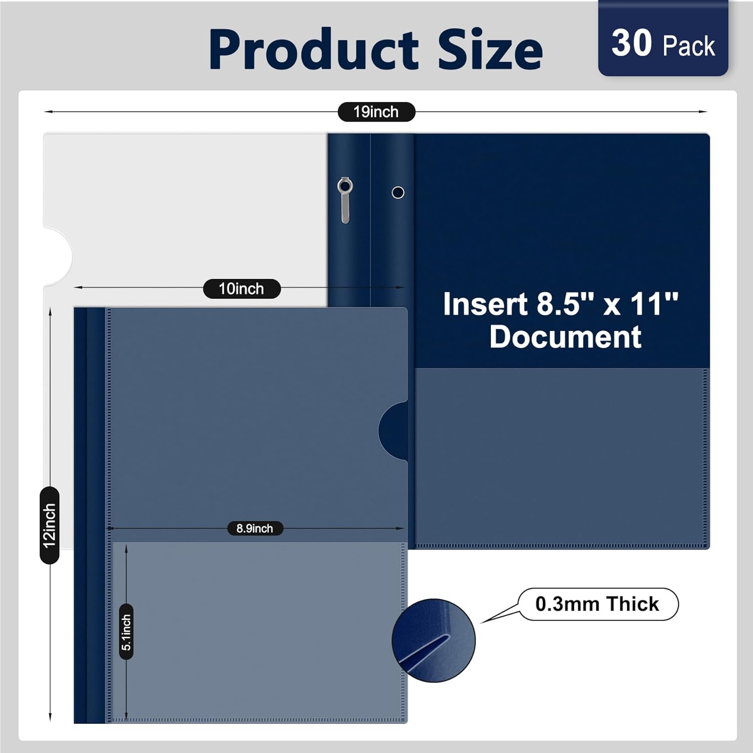 Ndsox 30 Packs Clear Front Report Covers with 3-Prong Fasteners Plastic Project Presentation Folders Resume Document Covers with Navy Blue Back for 8.5x11" Letter Size Paper for School Office Business