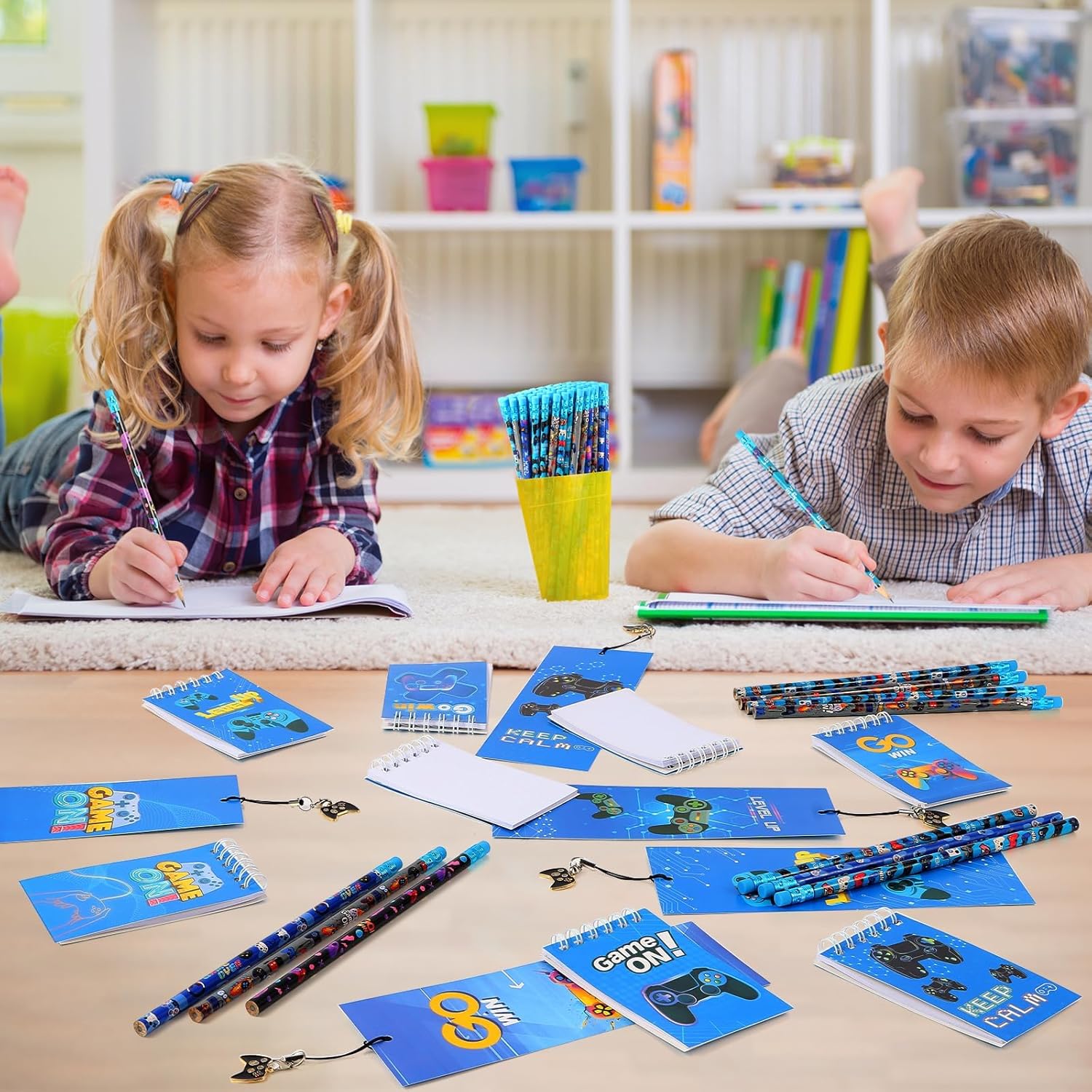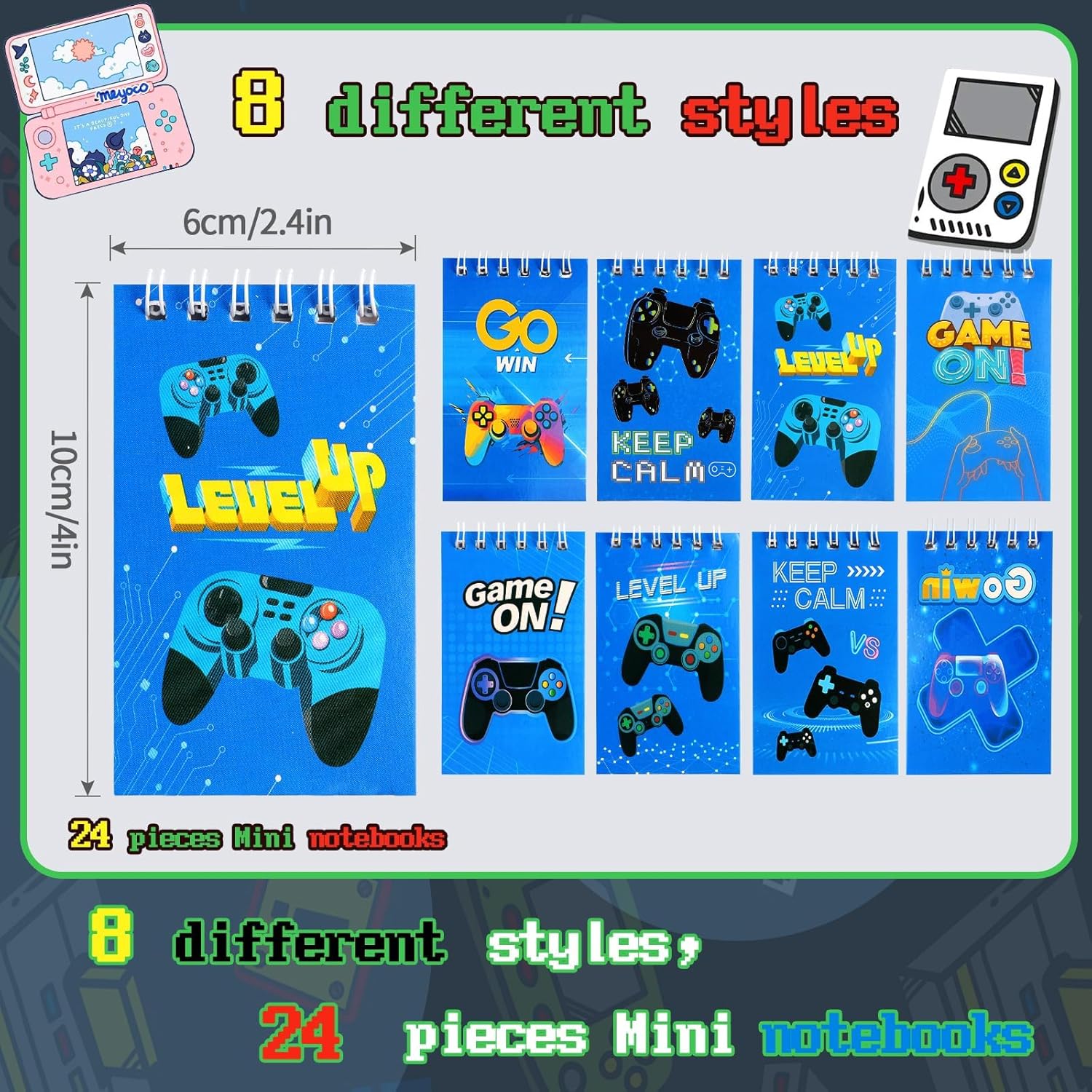 - What you get: video game party favor set includes 100 pieces pencils in different styles,8 different patterns of 24 mini spiral notepads and 24 pieces bookmarks in 8 styles. These will surely be a big hit at game birthday theme party. A very dazzling game themed party bag filler provides something that boys and girls will love