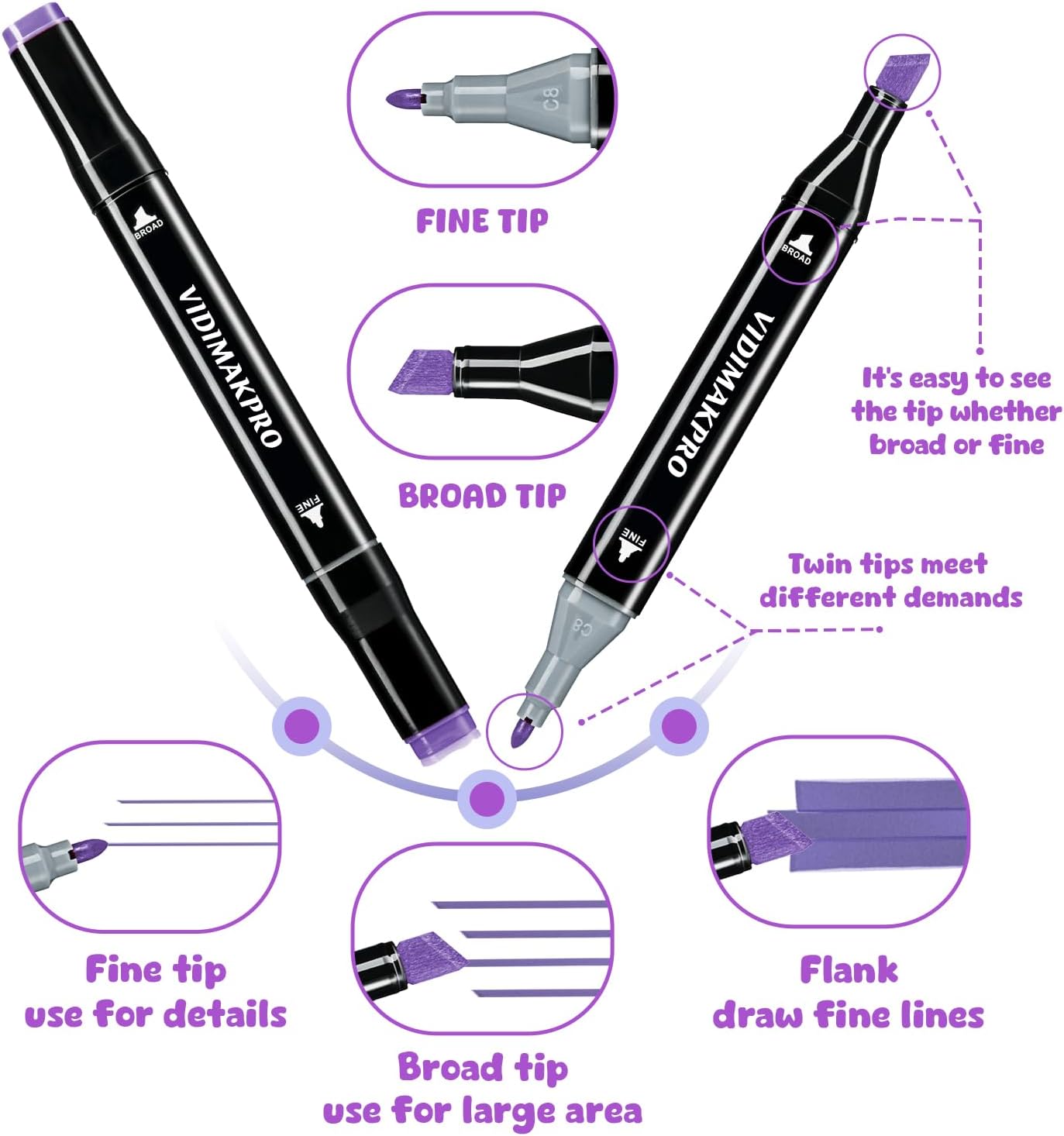 - 168 VIBRANT MARKER COLORS: The stunning palette offers a wide range of delicate neutral colors to highly saturated bright colors. Professional grade colors are highly favored by creators, illuminating the world of inspiration like a rainbow