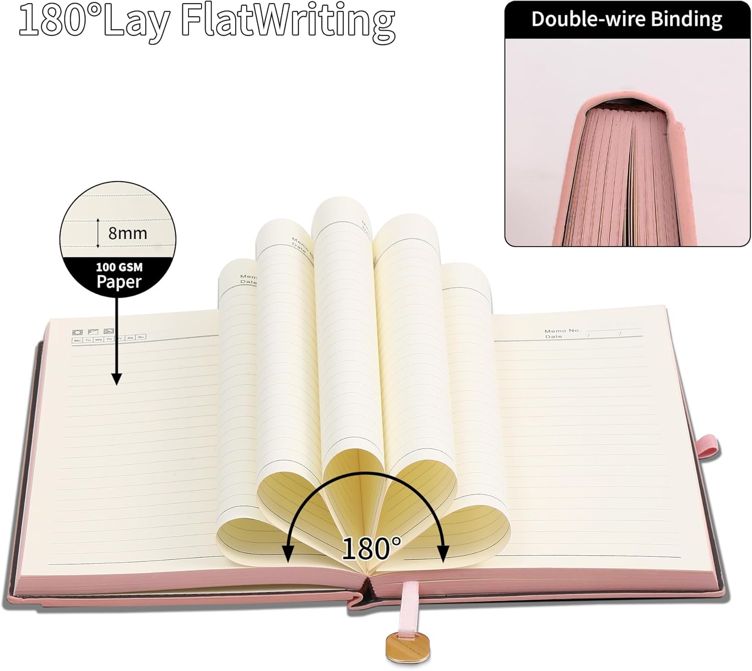 - A5 Sized Journal Notebook: The business notebook journal is 5.75x8.35 inches, easy to portable, perfect size to work or daily use for both men and women. The lined journal notebook has 300 Pages/150 sheets with 100 gsm/67 lb. ruled paper, thick enough to avoid ink bleeding, let you enjoy the smooth writing
